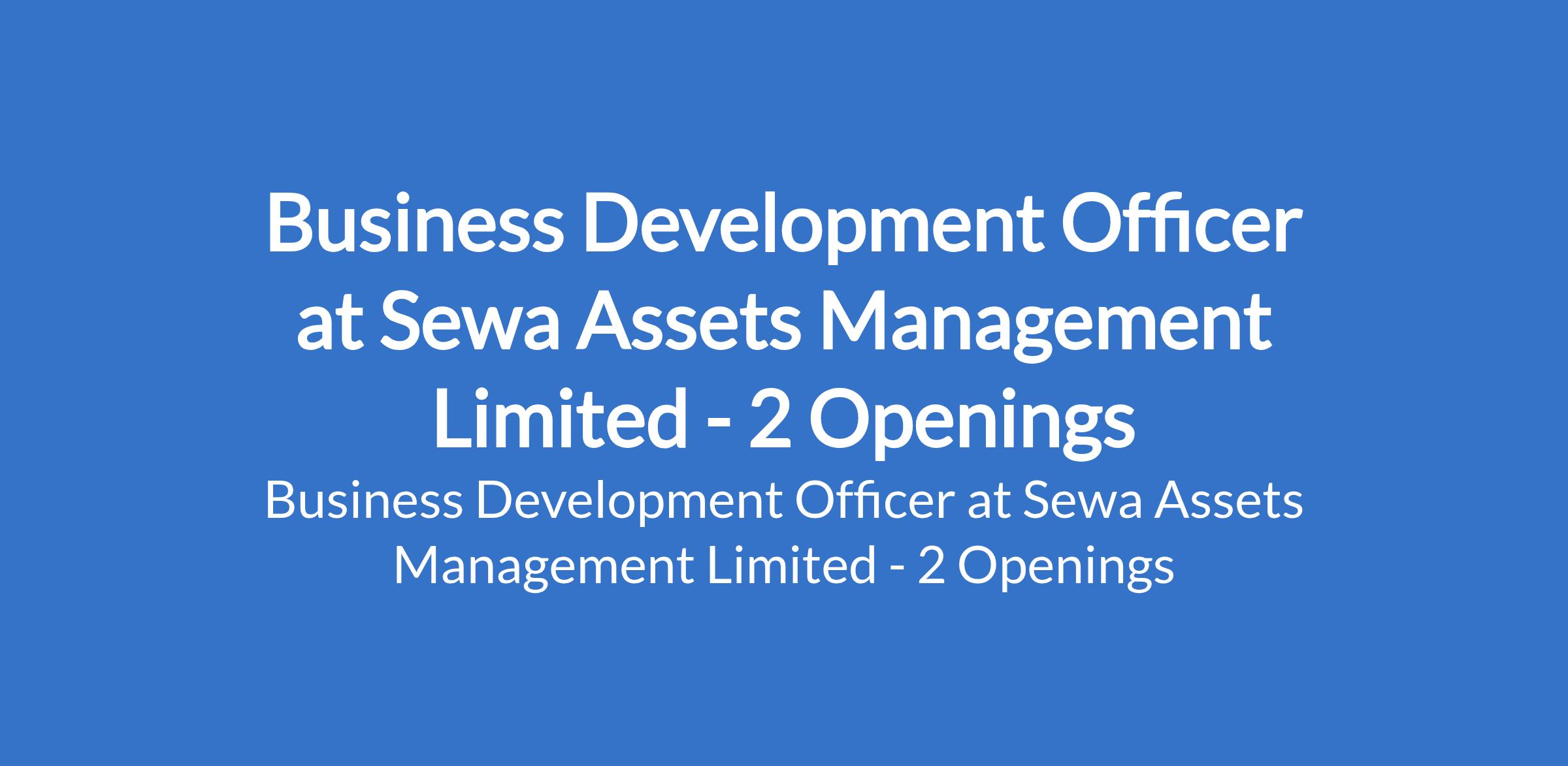 Sewa Assets Management Limited is recruiting to fill the position of: Business Development Officer. The position is located in Abuja (FCT) & Lagos State. Interested candidates should possess a Bachelors Degree in Finance, Economics, Business Administration, or related field with 2 - 5 years of experience in business development, sales, or relationship management in financial services.