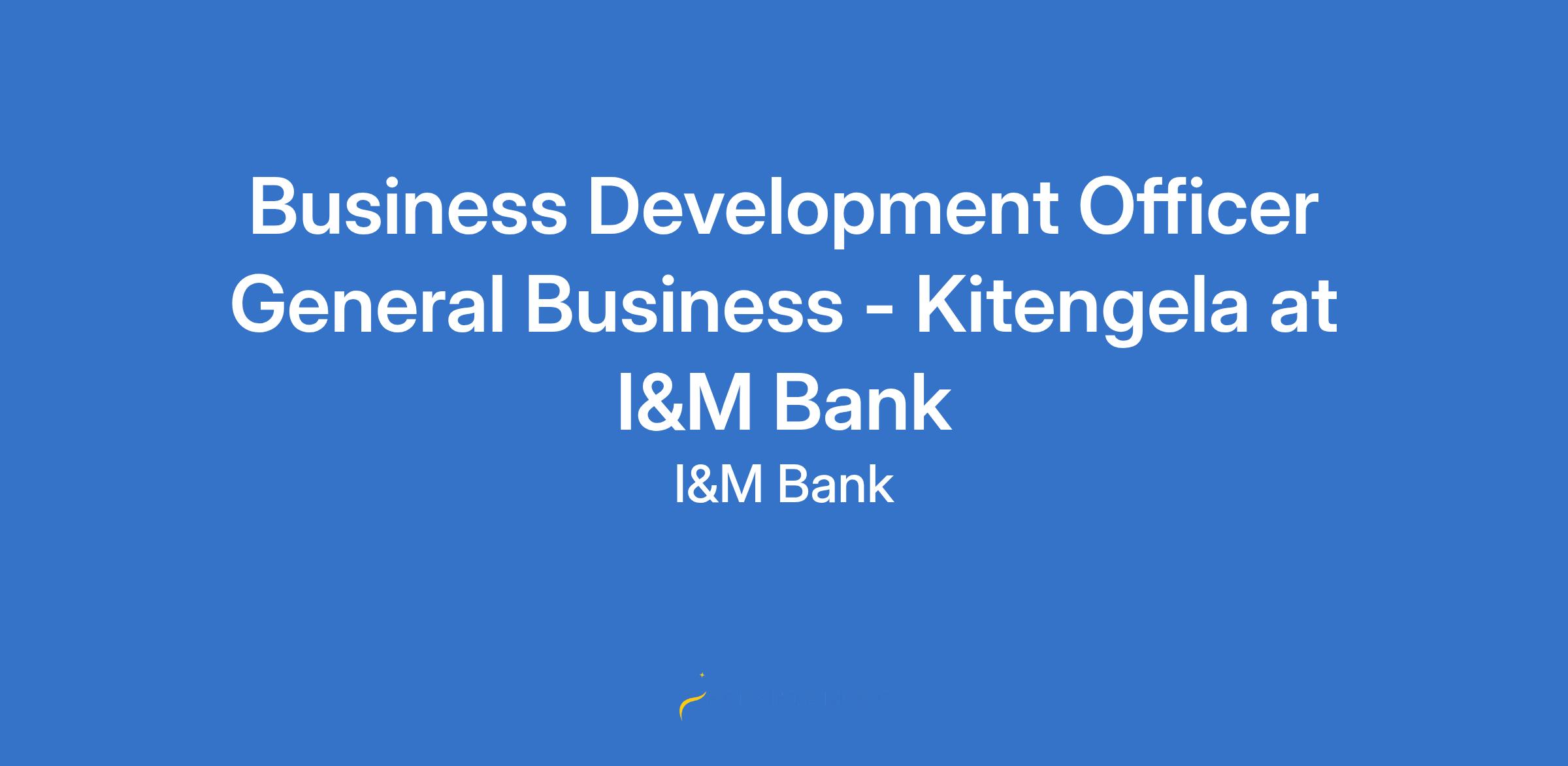 Business Development Officer General Business - Kitengela at I&M Bank