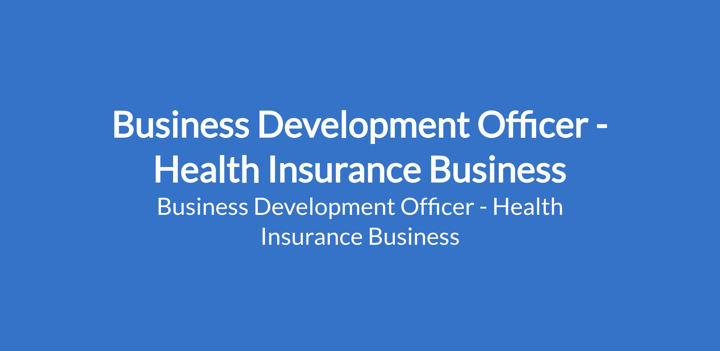 Business Development Officer - Health Insurance Business