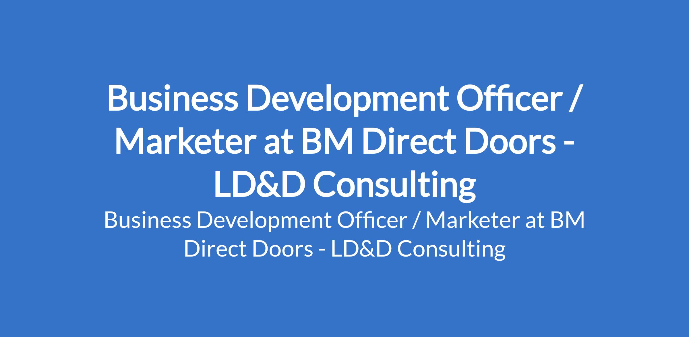 LD&D Consulting - Our client, BM Direct Doors is recruiting to fill the position of: Business Development Officer / Marketer. The position is located in Lekki, Lagos State. Salary: N400,000 per month. Interested candidates should possess an HND / B.Sc Degree in Marketing, Business or related fields with 35 years experience in sales/marketing.