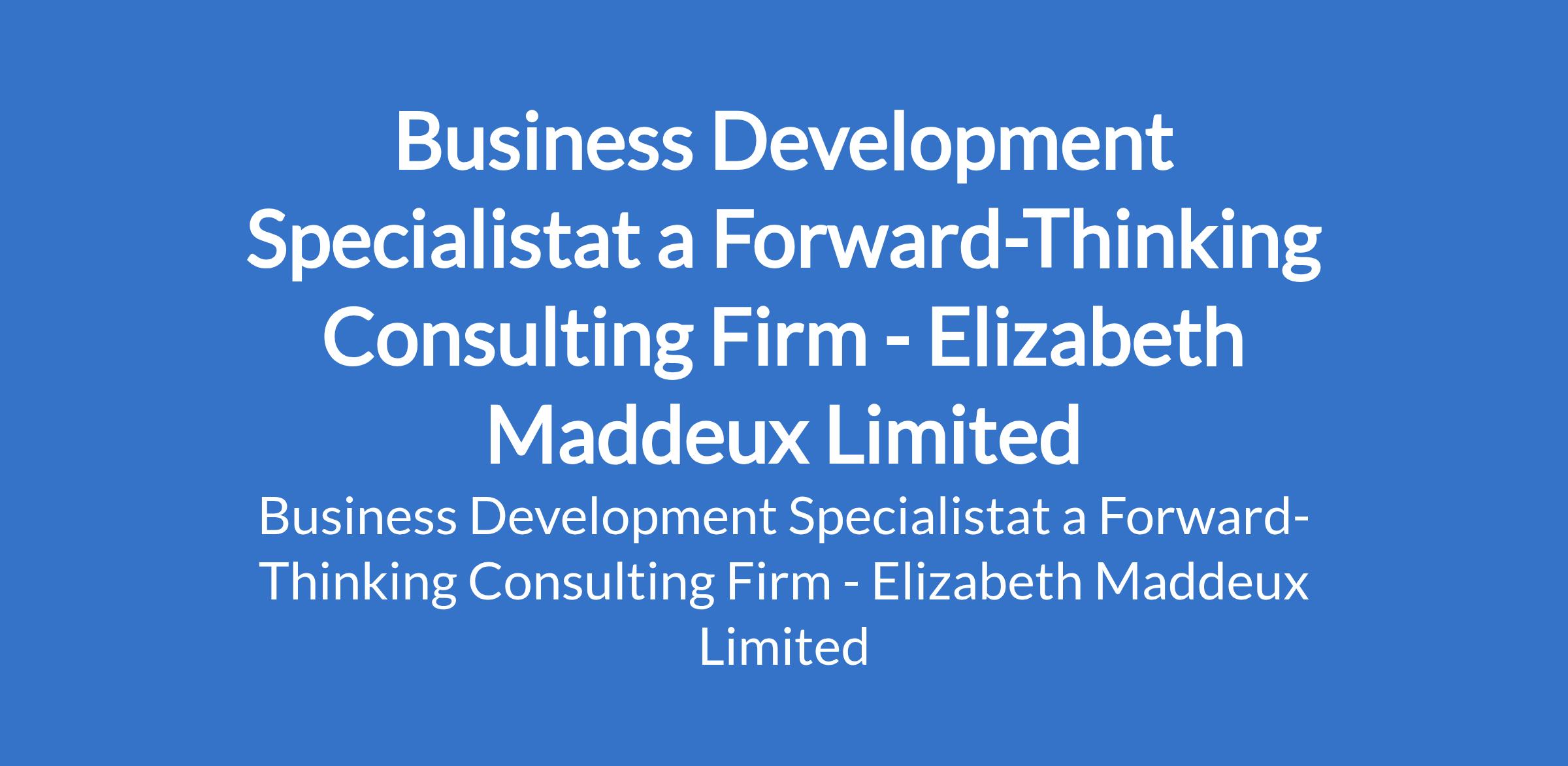 Elizabeth Maddeux Limited - Our client, a forward-thinking consulting firm is recruiting to fill the position of: Business Development Specialist. The position is located in Ikeja, Lagos State. Salary: N250,000 / month. Interested candidates should possess a Bachelors Degree in Business Administration, Marketing, Finance, or a related field with at least 5 years of active experience in business development or sales within the consulting or service industry.