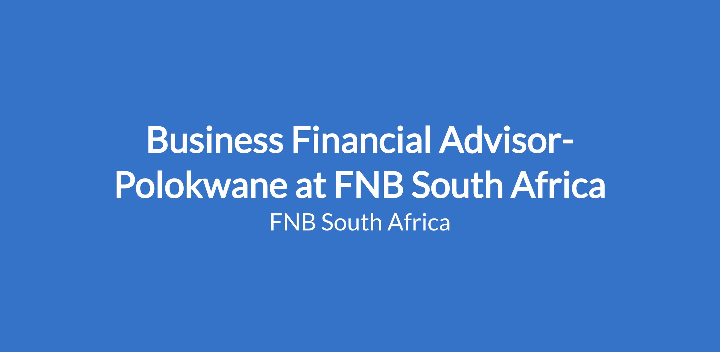 Deliver exceptional Financial Advice to FNB Customers that exceeds customers' expectations through proactive, innovative and appropriate solutions