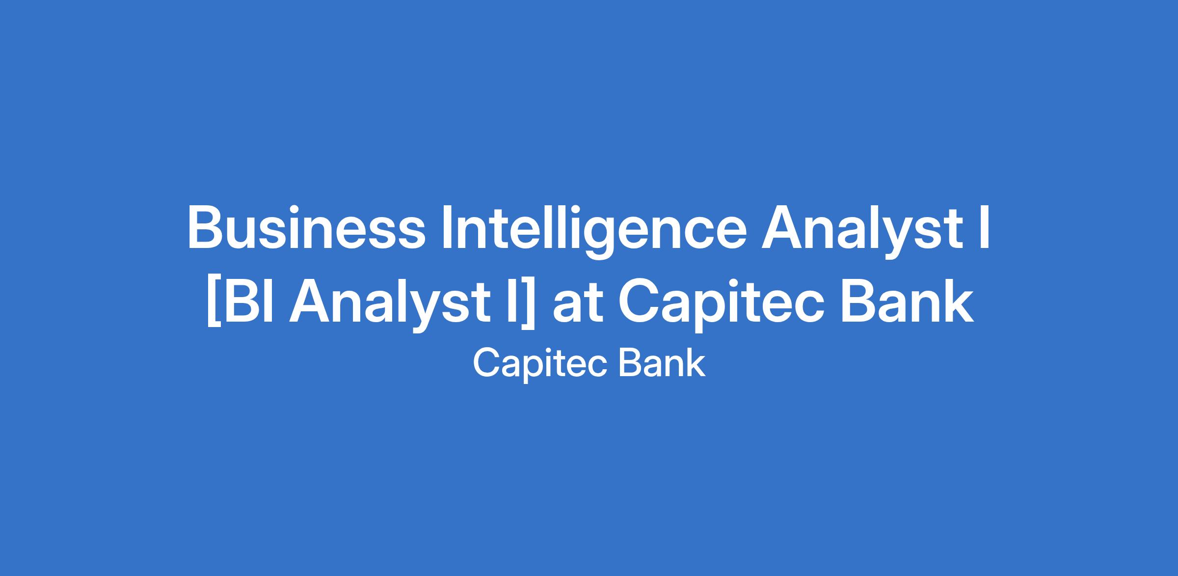 Business Intelligence Analyst I [BI Analyst I] at Capitec Bank
