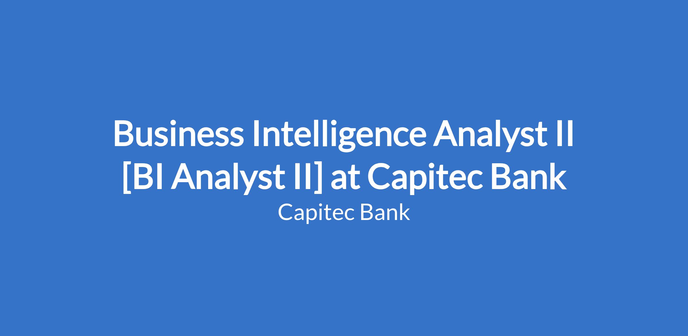 Business Intelligence Analyst II [BI Analyst II] at Capitec Bank