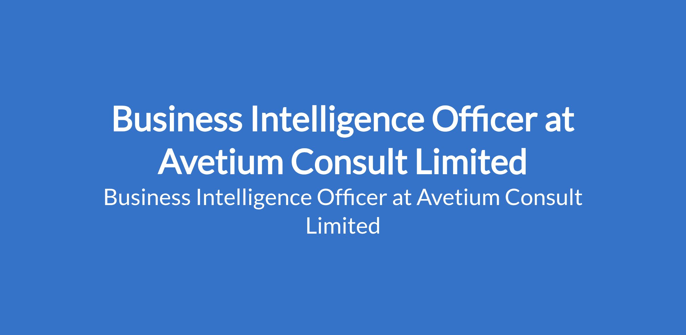 Avetium Consult Limited is recruiting to fill the position of: Business Intelligence Officer. The position is located in Lagos State. Interested candidates should possess an Undergraduate or recent graduate in Business, Economics, Engineering, Data / Analytics, Marketing, or related discipline
