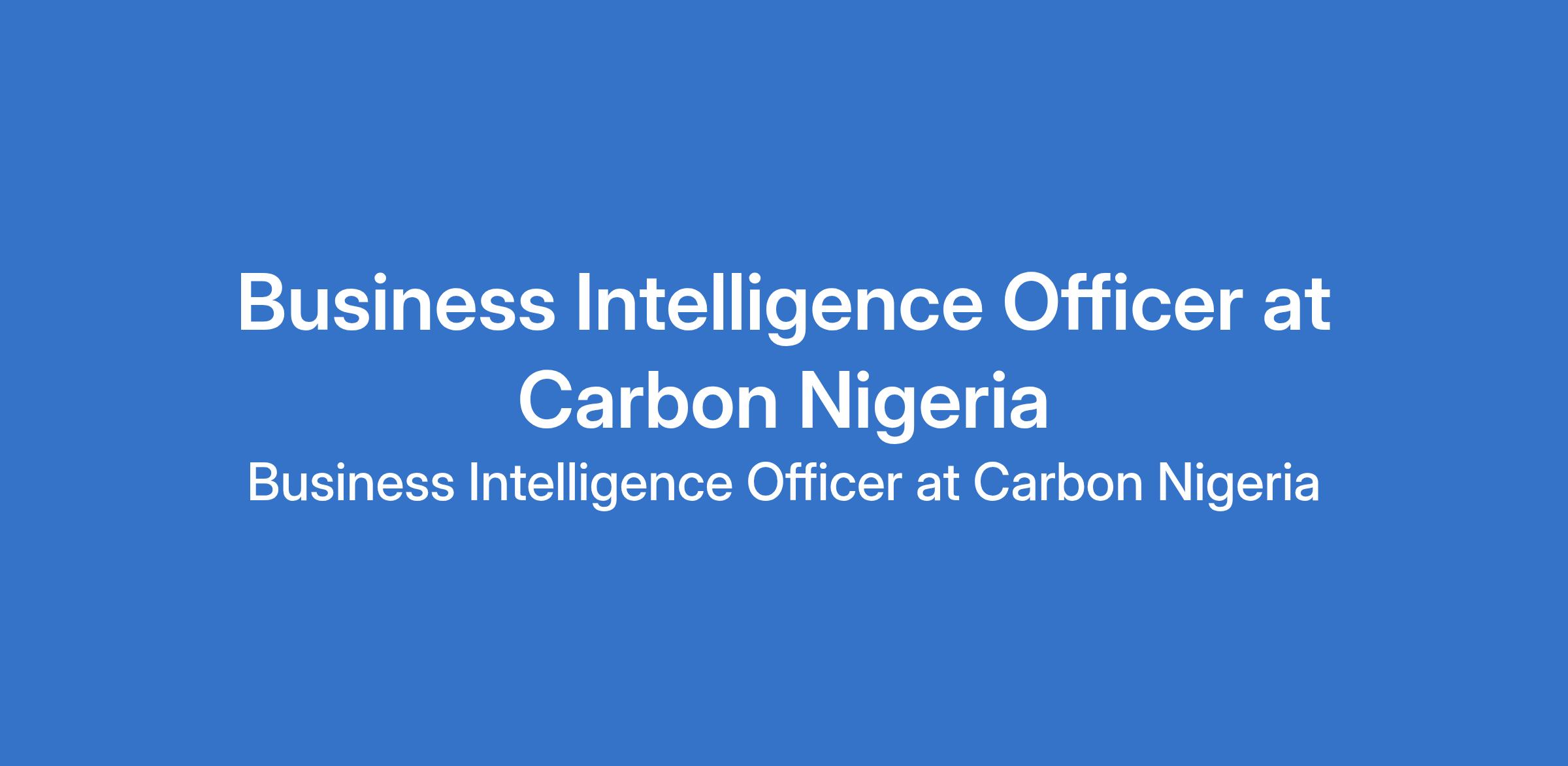 Carbon Nigeria is recruiting to fill the position of: Business Intelligence Officer. The position is located in Lagos State. Interested candidates should possess a Bachelor's or Masters Degree in a technical field (e.g., Computer Science, Engineering) with 3+ years of professional experience.