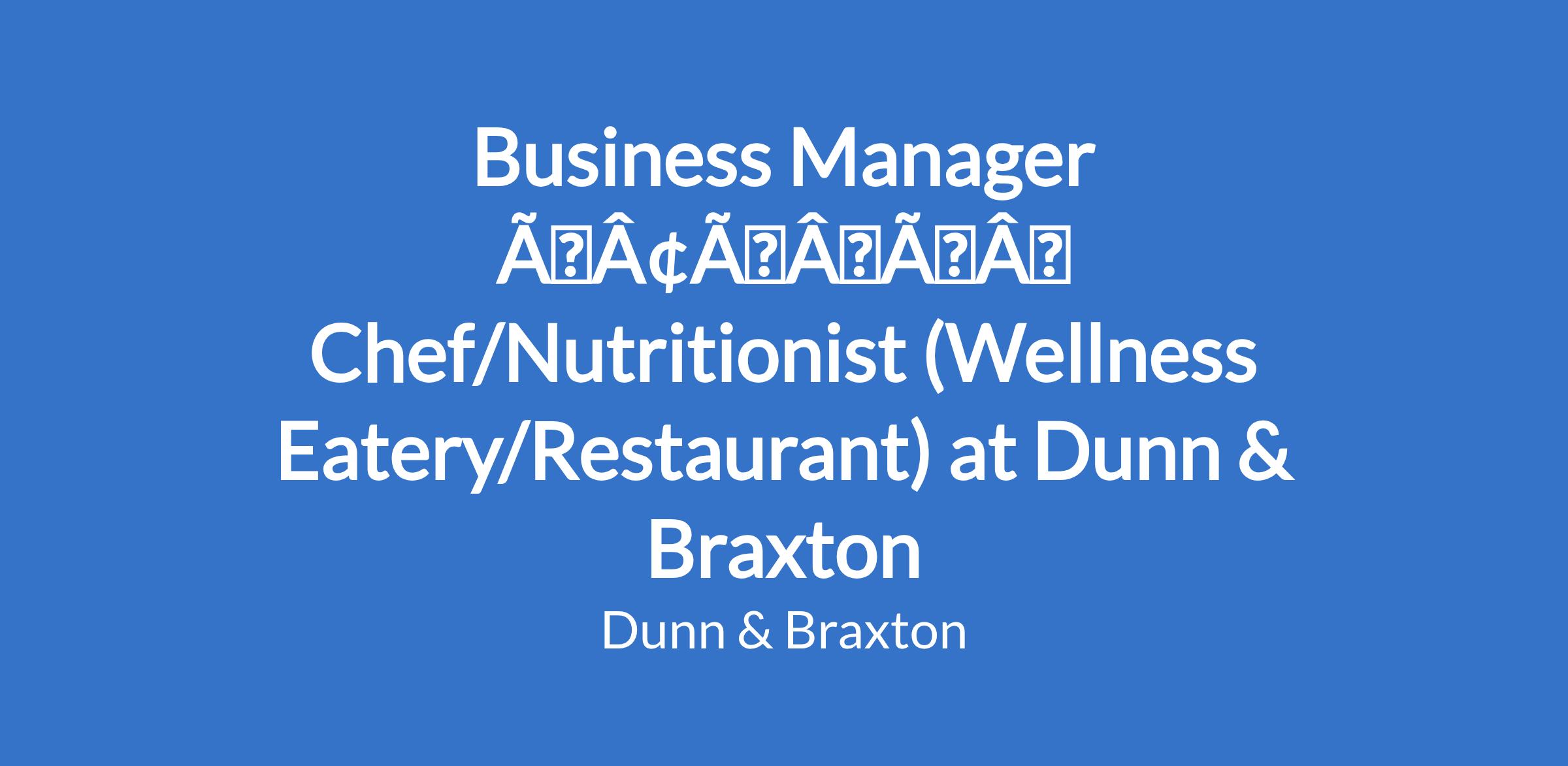Business Manager âÃÂàChef/Nutritionist (Wellness Eatery/Restaurant) at Dunn & Braxton