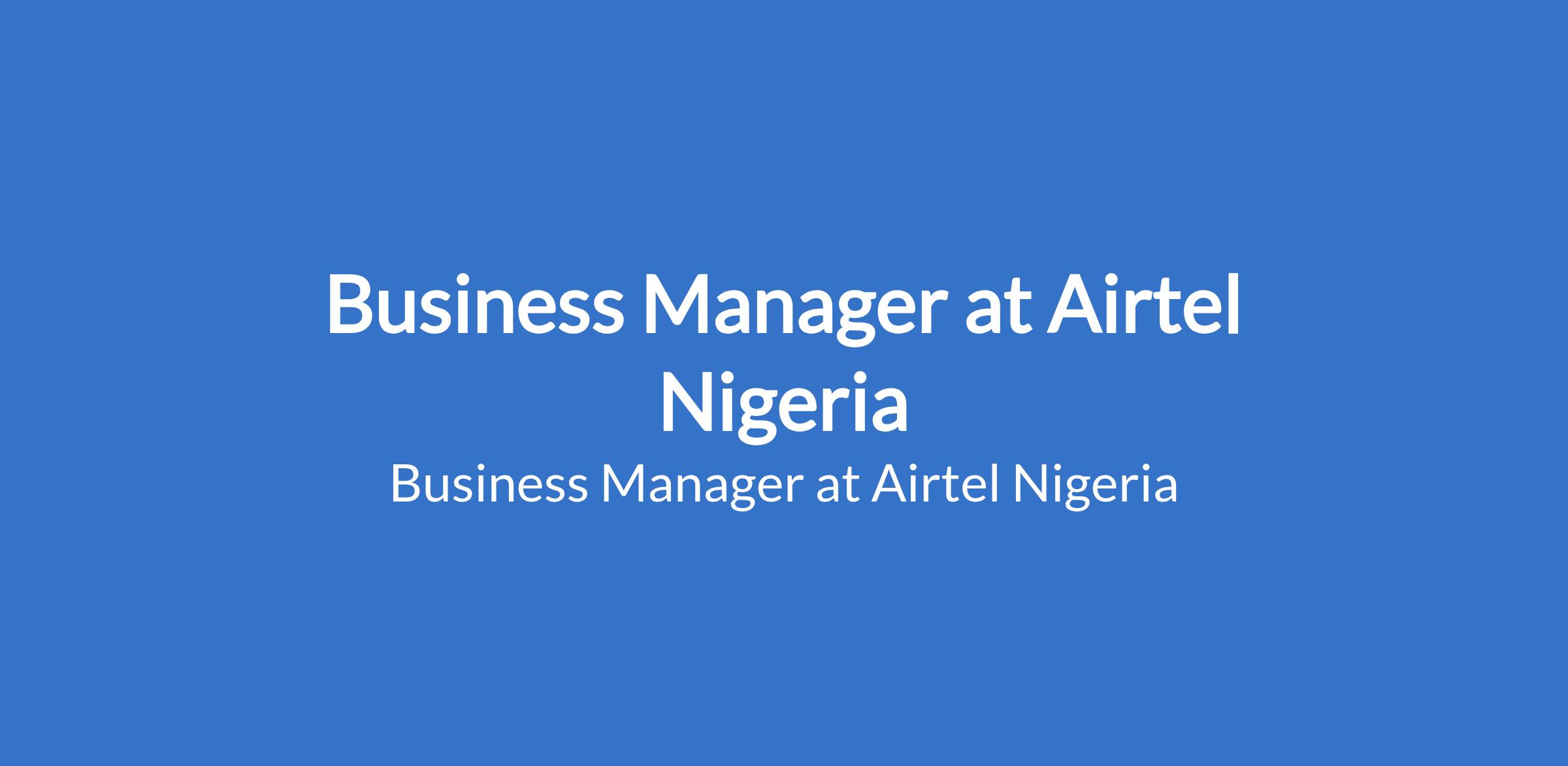 Airtel Nigeria is recruiting to fill the position of: Business Manager. The position is located in Bayelsa State. Interested candidates should possess a Bachelors Degree in Management or related Social Sciences with 10+ years of varied experience in Sales & Marketing with at least 2 years at middle management level handling independent businesses.
