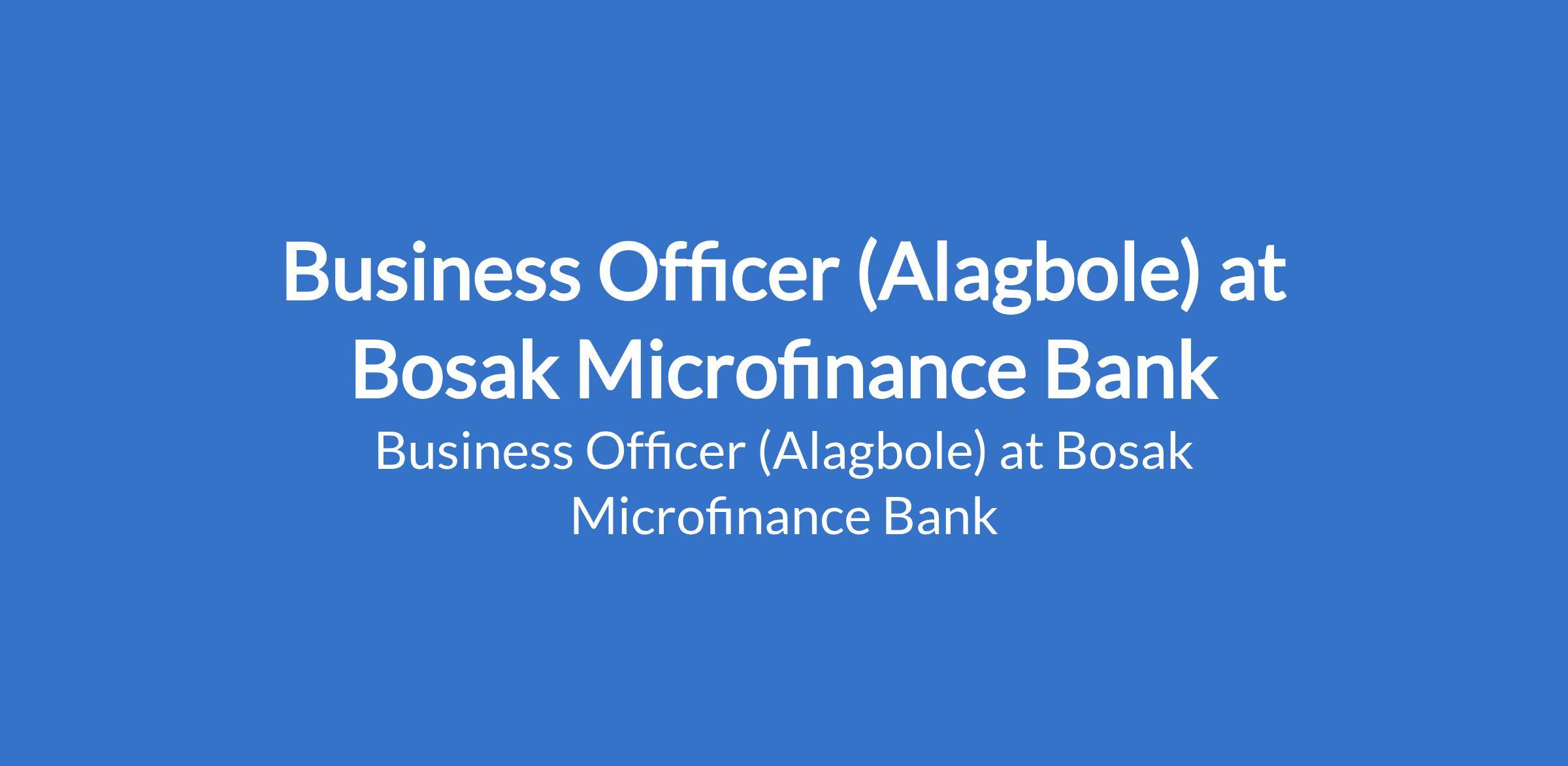 Business Officer (Alagbole) at Bosak Microfinance Bank