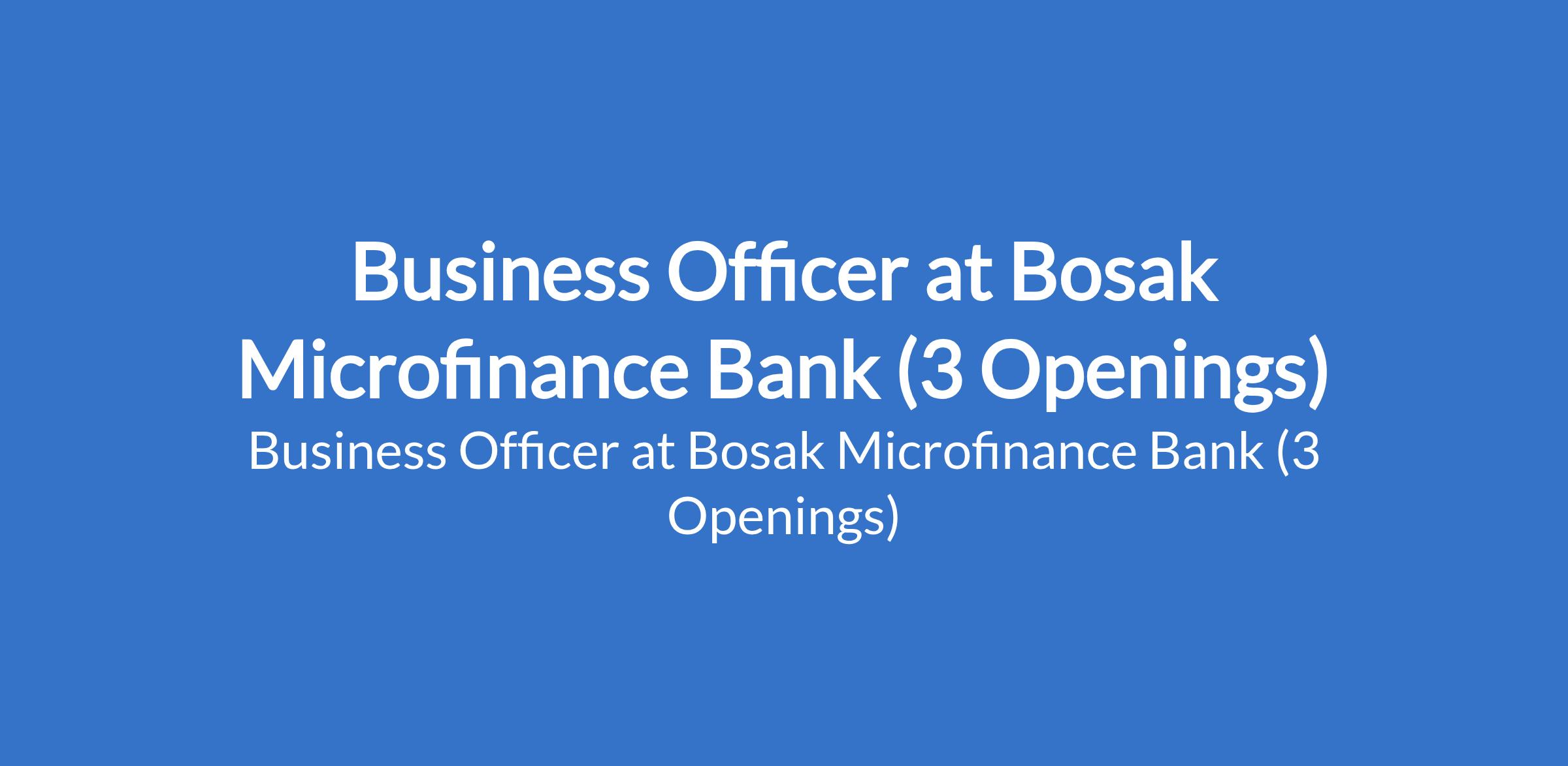 Bosak Microfinance Bank is recruiting to fill the position of: Business Officer. The position is located in Agege, Mowe & Ogba, Lagos State. Salary: N100,000 N140,000 Monthly. Interested candidates should possess relevant qualifications with work experience.
