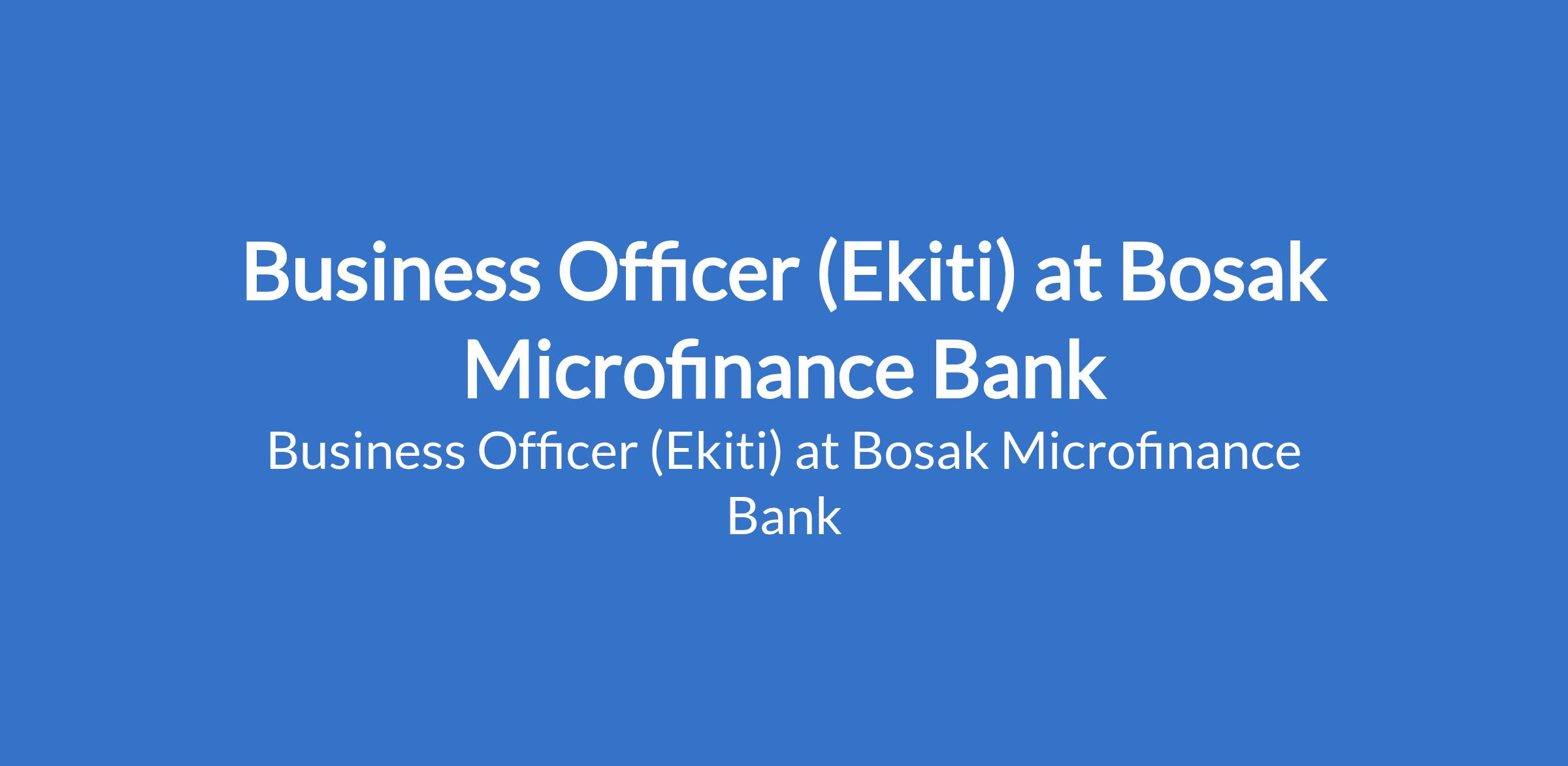 Bosak Microfinance Bank is recruiting to fill the position of: Business Officer. The position is located in Ado-Ekiti, Ekiti State. Salary: N100,000 N140,000 Monthly. Interested candidates should possess relevant qualifications.