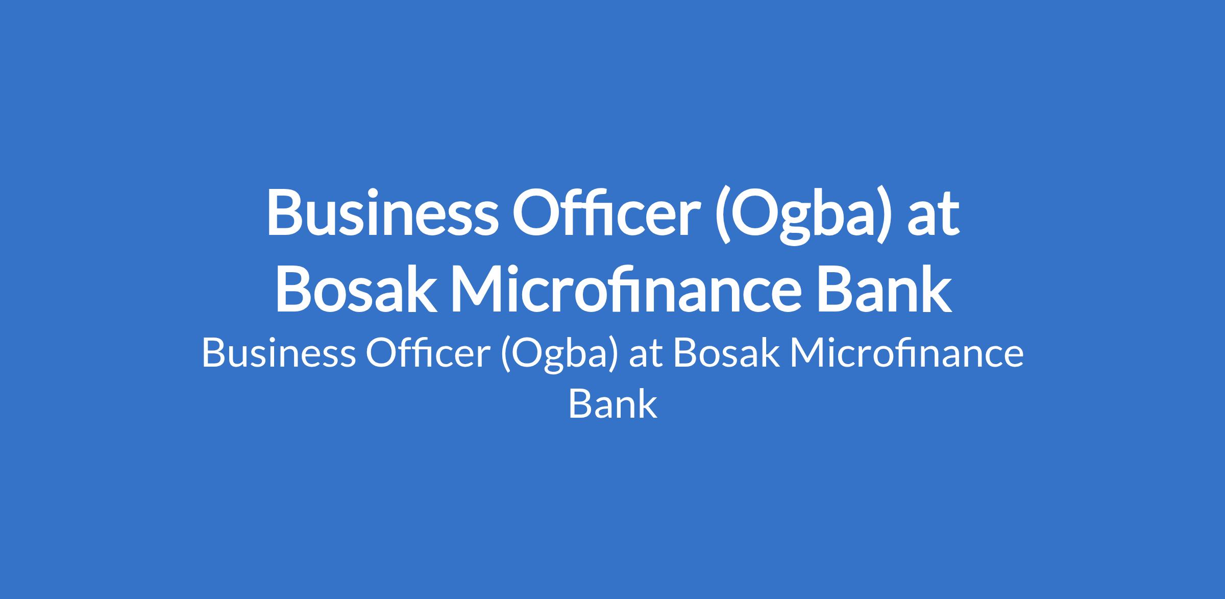 Business Officer (Ogba) at Bosak Microfinance Bank