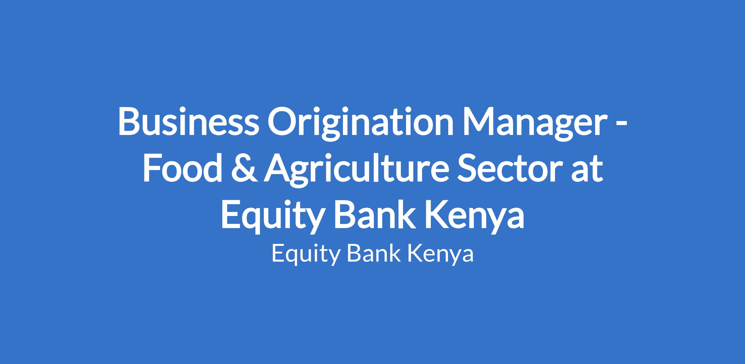 Business Origination Manager - Food & Agriculture Sector at Equity Bank Kenya