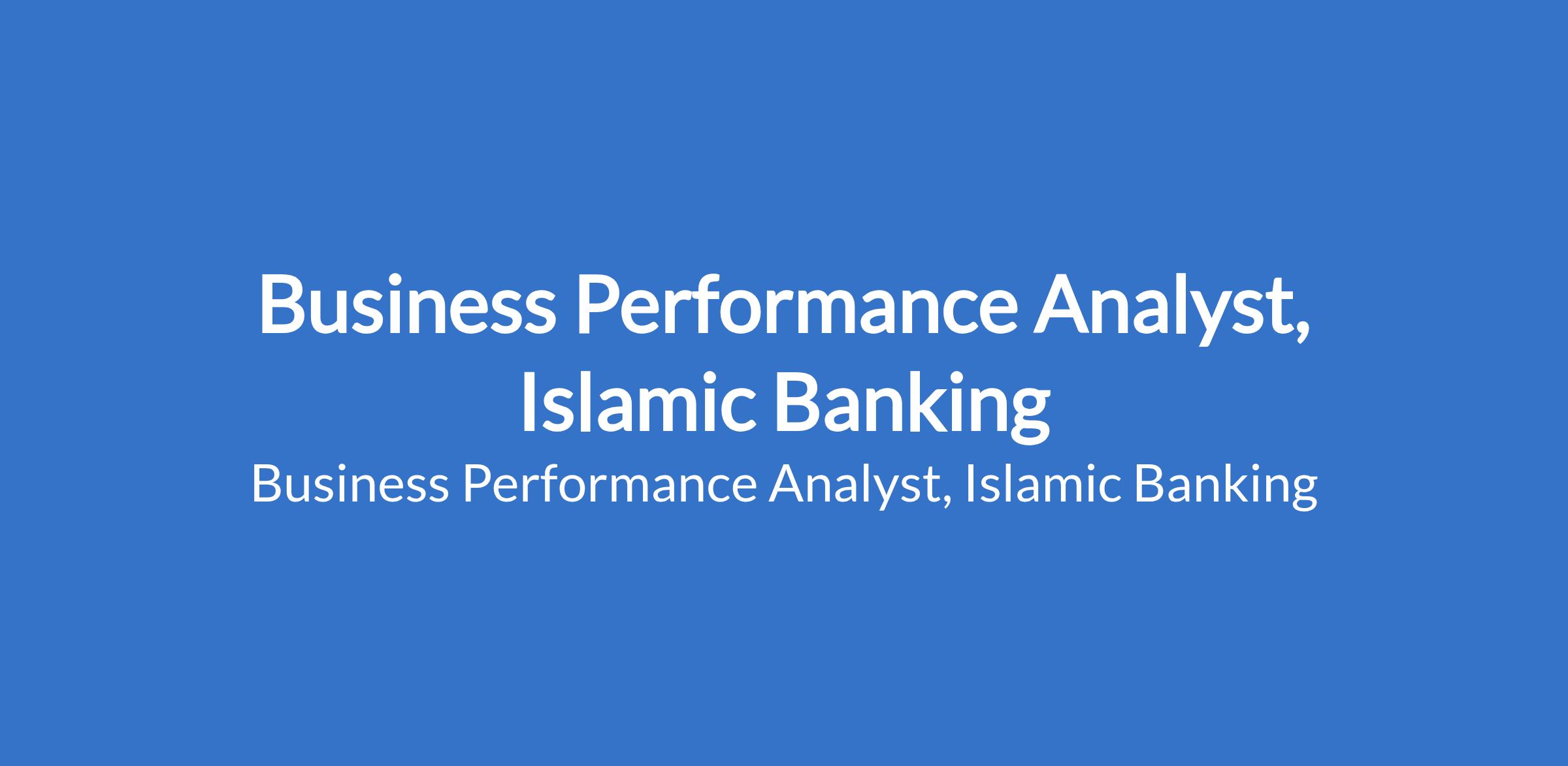 Position Title: Business Performance Analyst, Islamic Banking