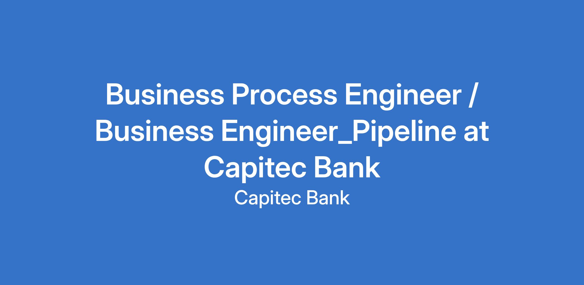 Business Process Engineer / Business Engineer_Pipeline at Capitec Bank