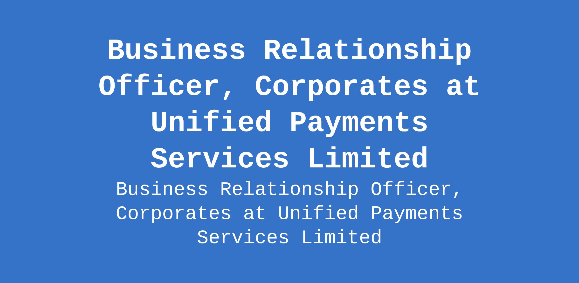 Unified Payments Services Limited is recruiting to fill the position of: Business Relationship Officer, Corporates. The position is located in Lagos State. Interested candidates should possess an HND / Bachelors Degree in Finance, Business, Engineering, Computer Science, or a related discipline with 5 7 years of experience in fintech, corporate banking, treasury, payments, or enterprise client services.
