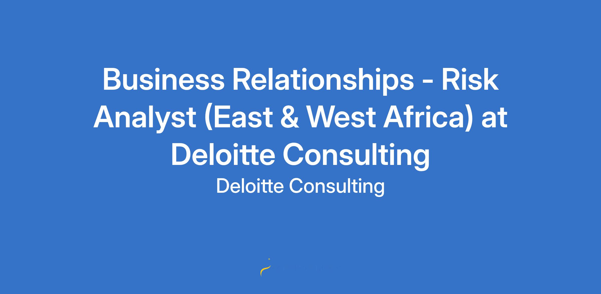 Business Relationships - Risk Analyst (East & West Africa) at Deloitte Consulting