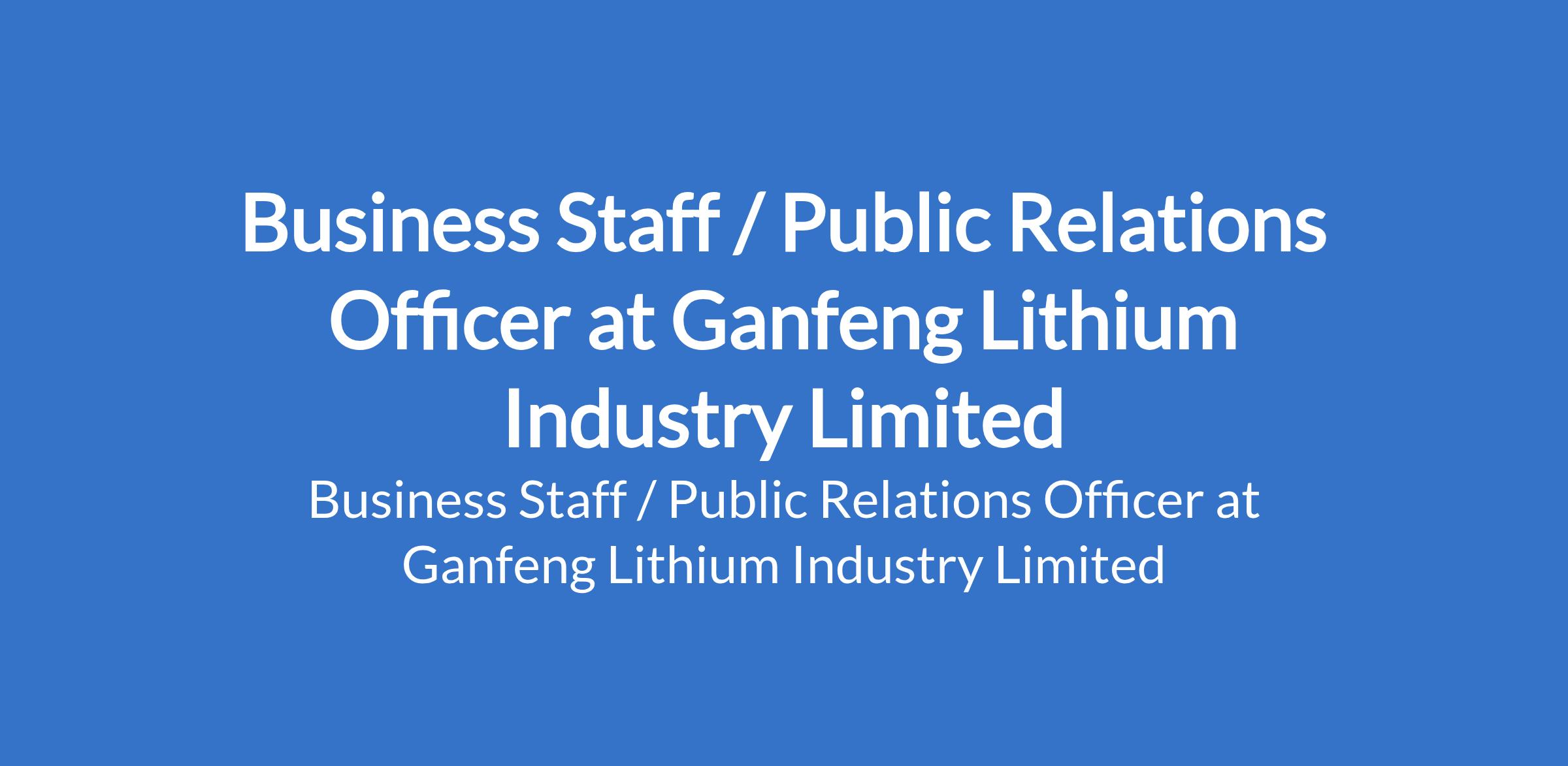 Ganfeng Lithium Industry Limited is recruiting to fill the position of: Business Staff / Public Relations Officer. The position is located in Abuja (FCT). Interested candidates should possess relevant qualifications with previous experience working in public relations.