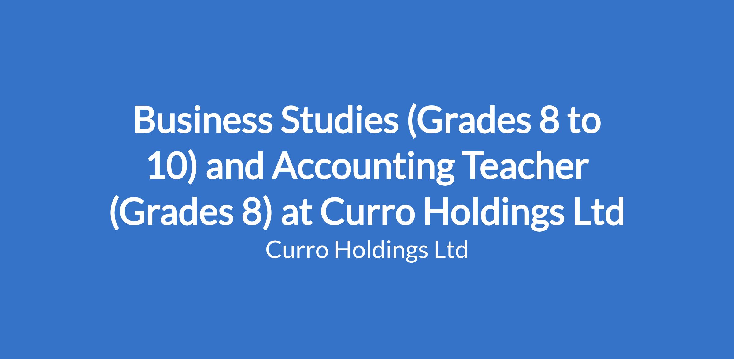 Business Studies (Grades 8 to 10) and Accounting Teacher (Grades 8) at Curro Holdings Ltd
