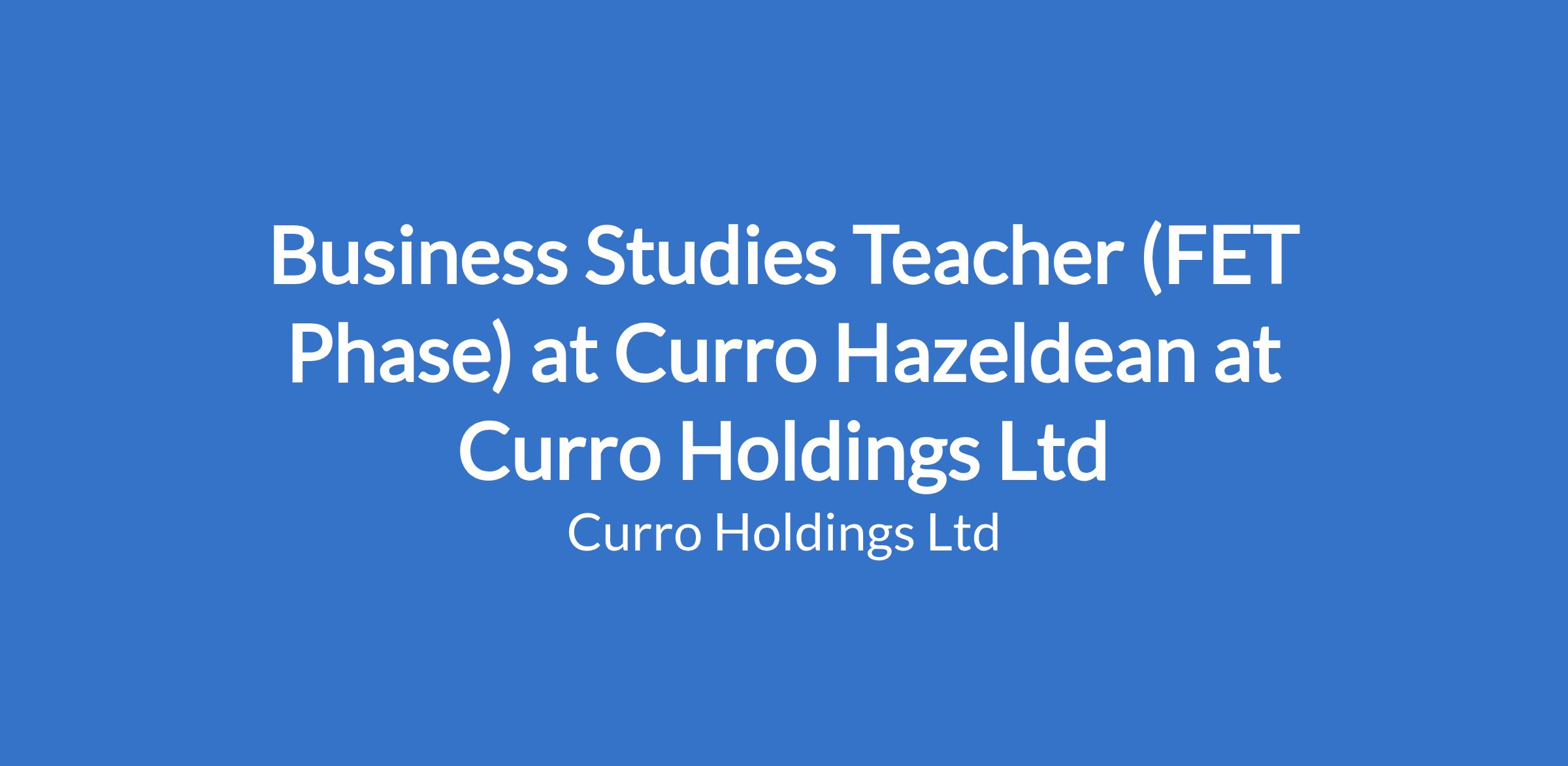 Business Studies Teacher (FET Phase) at Curro Hazeldean at Curro Holdings Ltd