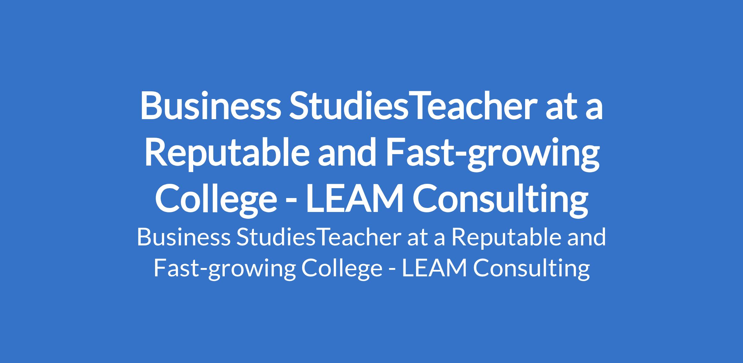 LEAM Consulting - Our client, a reputable and fast-growing College is recruiting to fill the position of: Business StudiesTeacher. The position is located in Akala Express way, Ibadan - Oyo State. Salary: N55,000 N60,000 monthly. Interested candidates should possess relevant qualifications, and must be dedicated, disciplined and committed to academic excellence and character development.