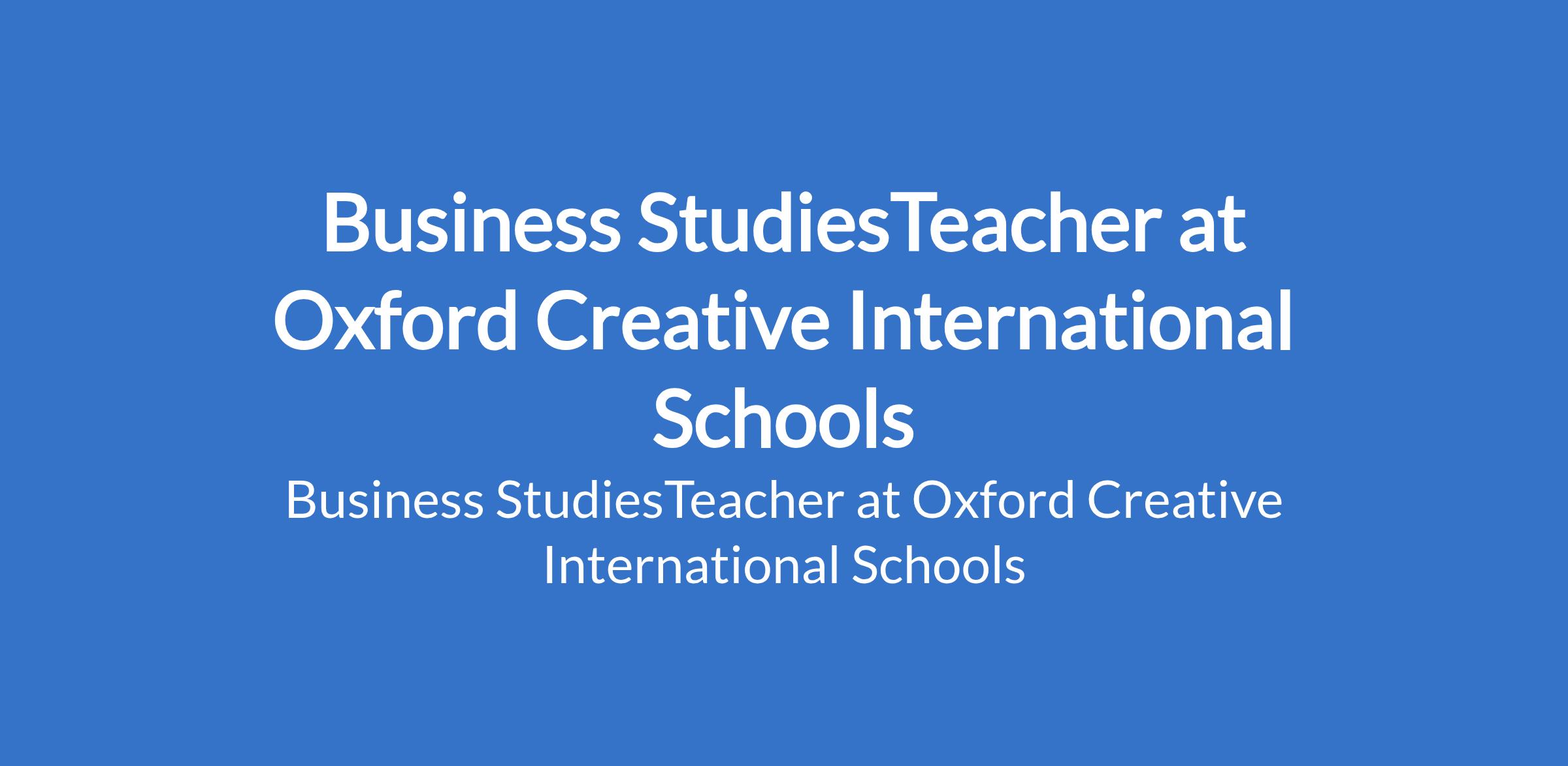 Oxford Creative International Schools is recruiting to fill the position of: Business StudiesTeacher. The position is located in Onitsha, Anambra State. Interested candidates should possess relevant educational qualification (B.Ed, B.Sc (Ed), B.A (Ed), or related Degree) with Prior teaching experience will be an added advantage.