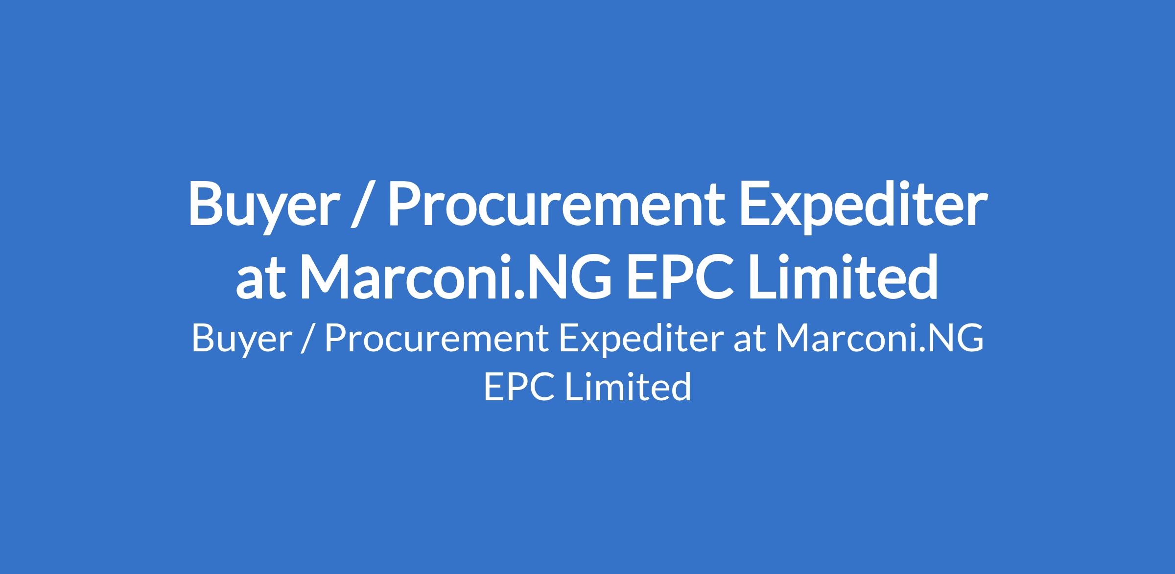 Marconi.NG EPC Limited is recruiting to fill the position of: Buyer / Procurement Expediter. The position is located in Port Harcourt, Rivers State. Interested candidate should possess an HND / B.Sc Degree in Supply Chain Management, Business Administration, Engineering, or related field with 35 years experience in buying, procurement, or expediting roles (EPC, oil & gas, construction, or industrial projects preferred).