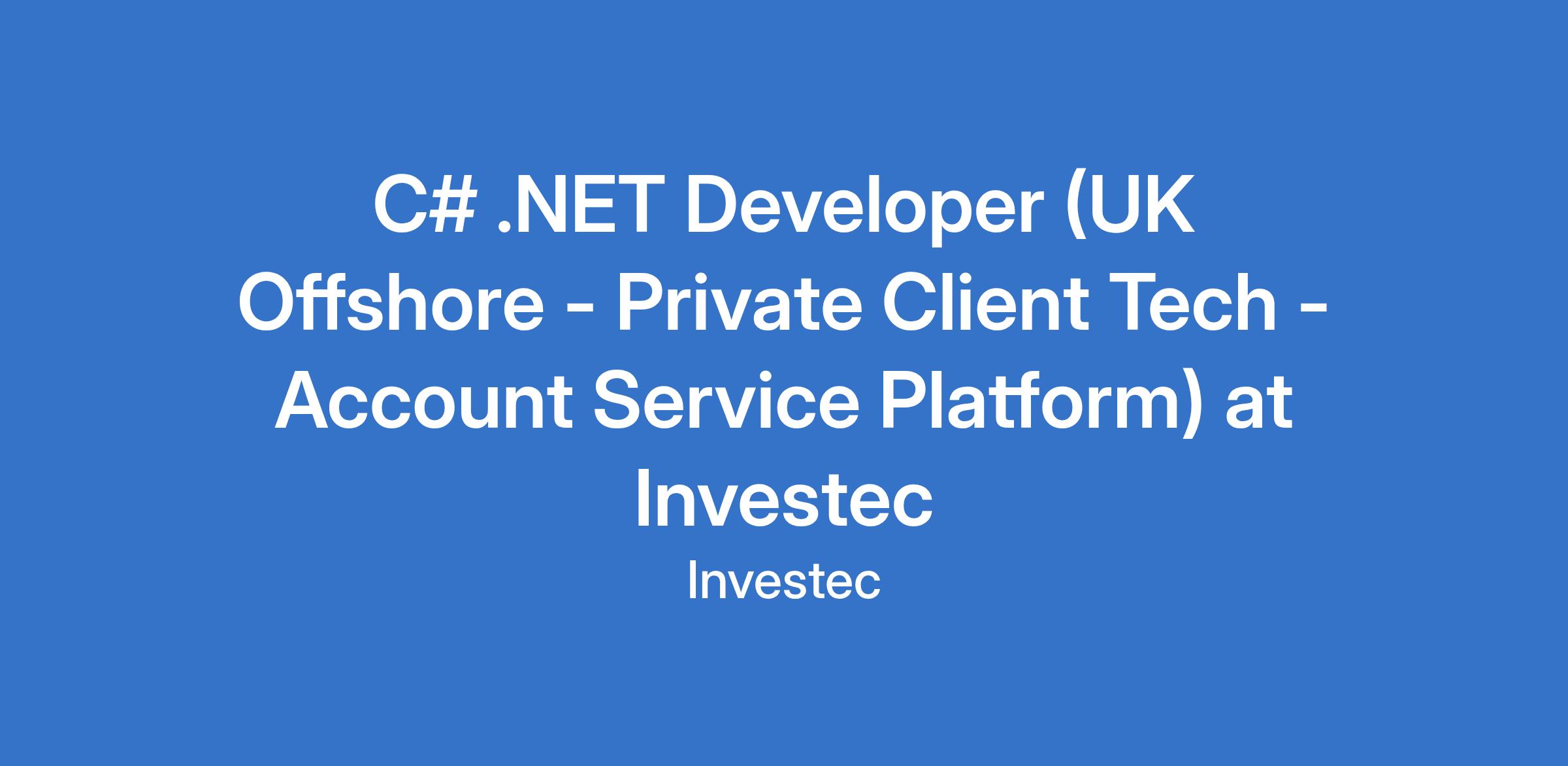 C# .NET Developer (UK Offshore - Private Client Tech - Account Service Platform) at Investec