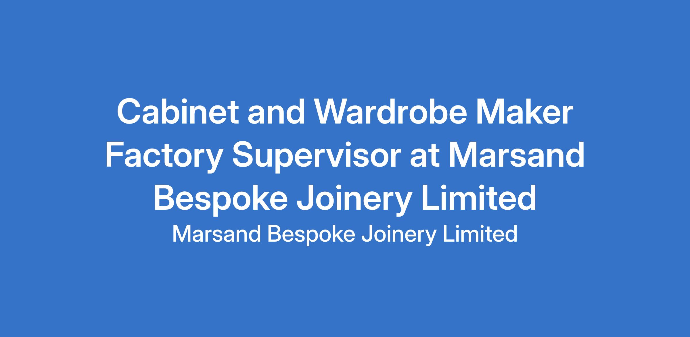 The Cabinet and Kitchen Factory Supervisor is responsible for overseeing daily factory operations involved in the production of cabinets and fitted kitchens.