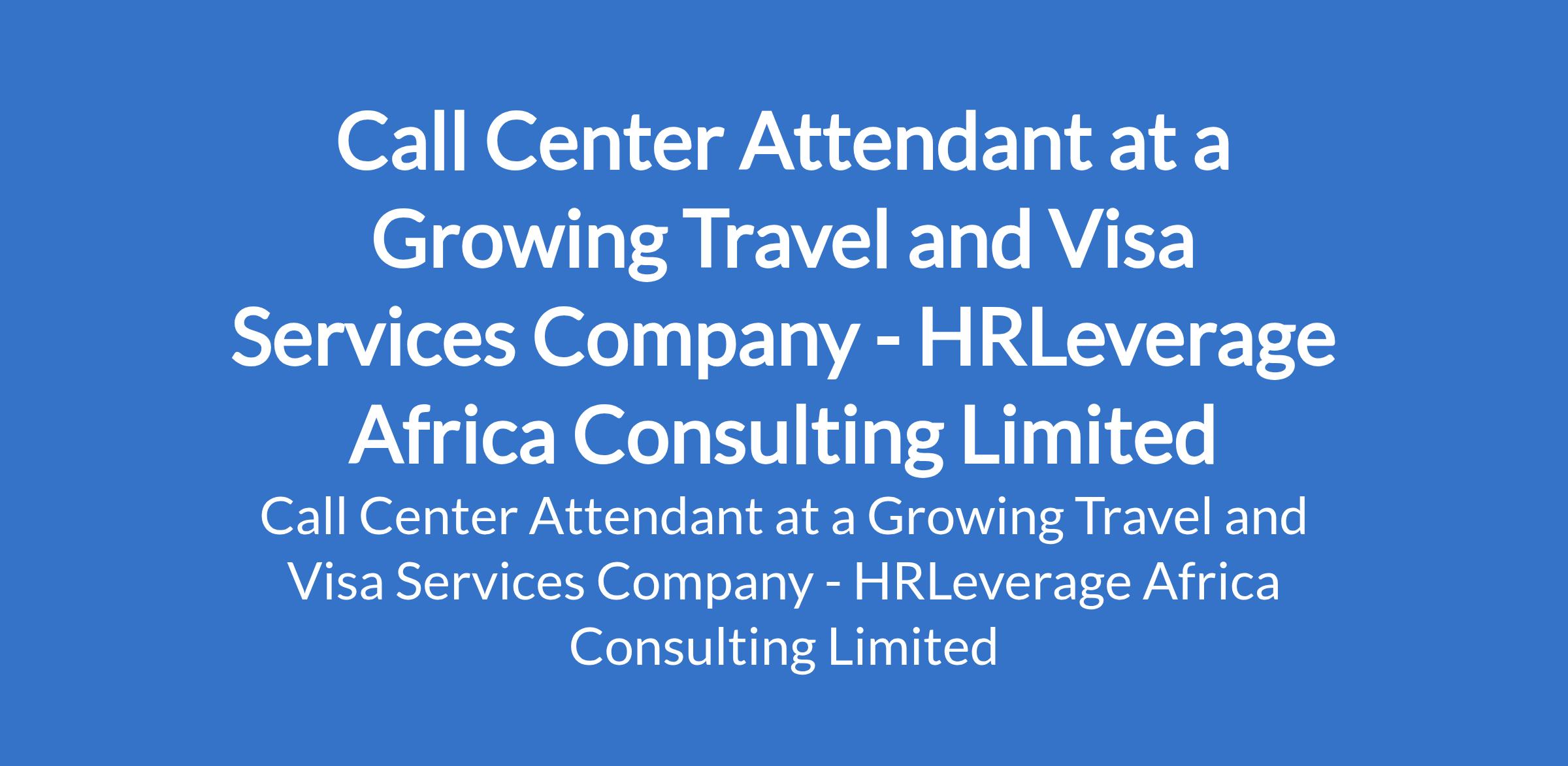 HRLeverage Africa Consulting Limited - Our client, a growing company in the travel and visa services industry is recruiting to fill the position of: Call Center Attendant. The position is located in Lekki, Lagos State. Interested candidates should possess an OND / HND / BSc in any discipline with 0 1 year of experience in customer service, sales, or call center roles.