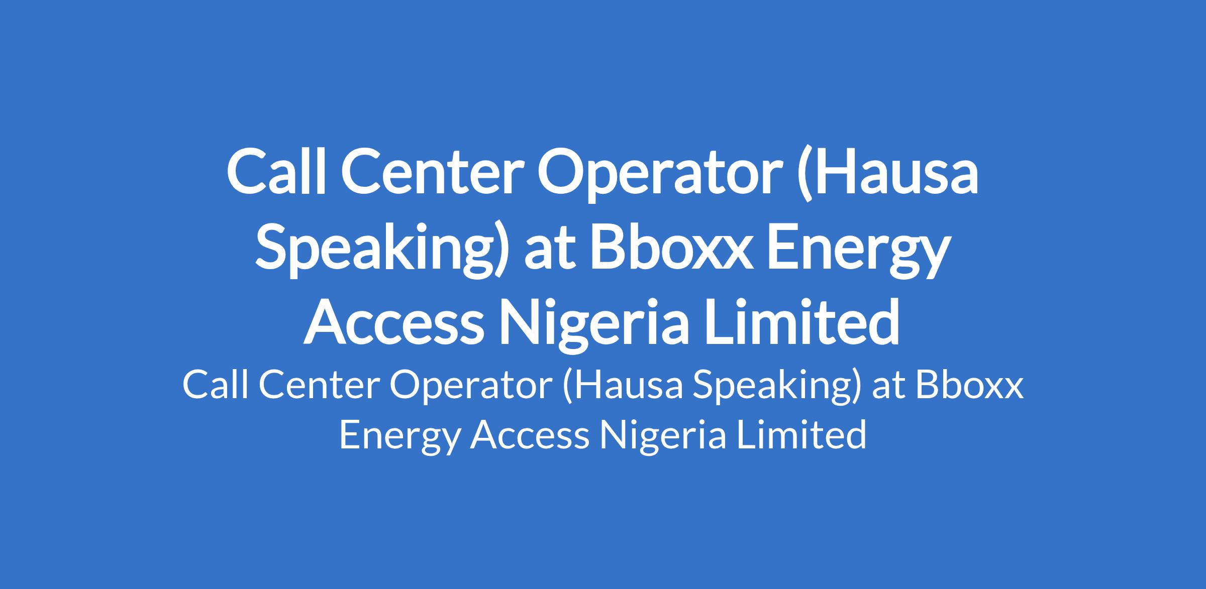 Bboxx Energy Access Nigeria Limited is recruiting to fill the position of: Call Center Operator (Hausa Speaking). The position is located in Ikeja, Lagos State. Interested candidates should possess an OND / HND / Bachelors Degree in any relevant field with 12 years experience in a call center or customer service role and must be fluent in Hausa Language.