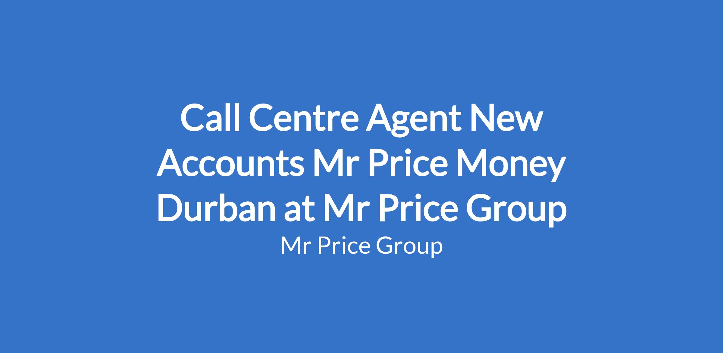 Call Centre Agent New Accounts Mr Price Money Durban at Mr Price Group