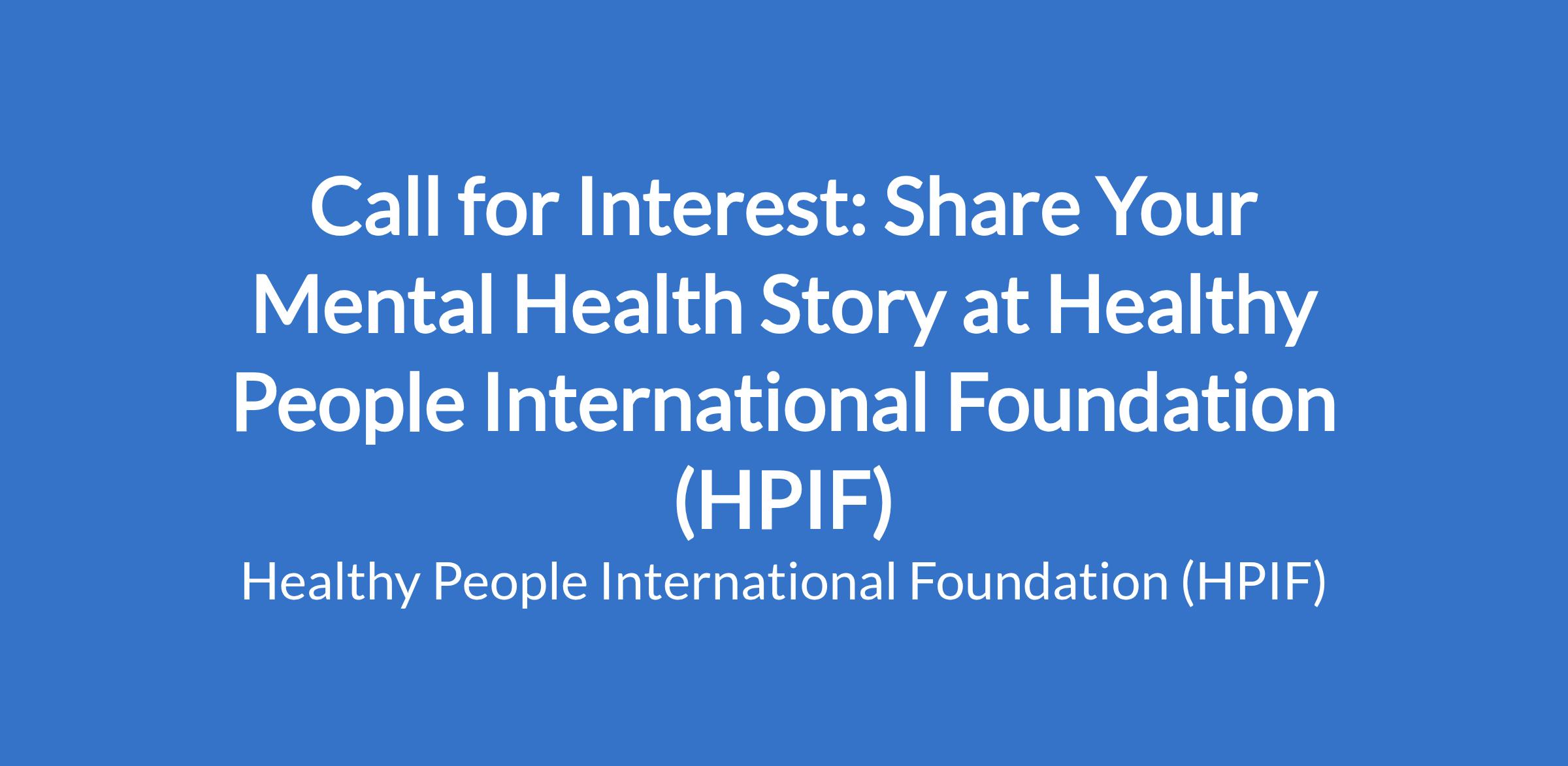 The Healthy People International Foundation (NGO registered in Nigeria, with a strong focus on mental health enlightenment) is inviting individuals who are willing to share their mental health experiences to help educate and inspire others.