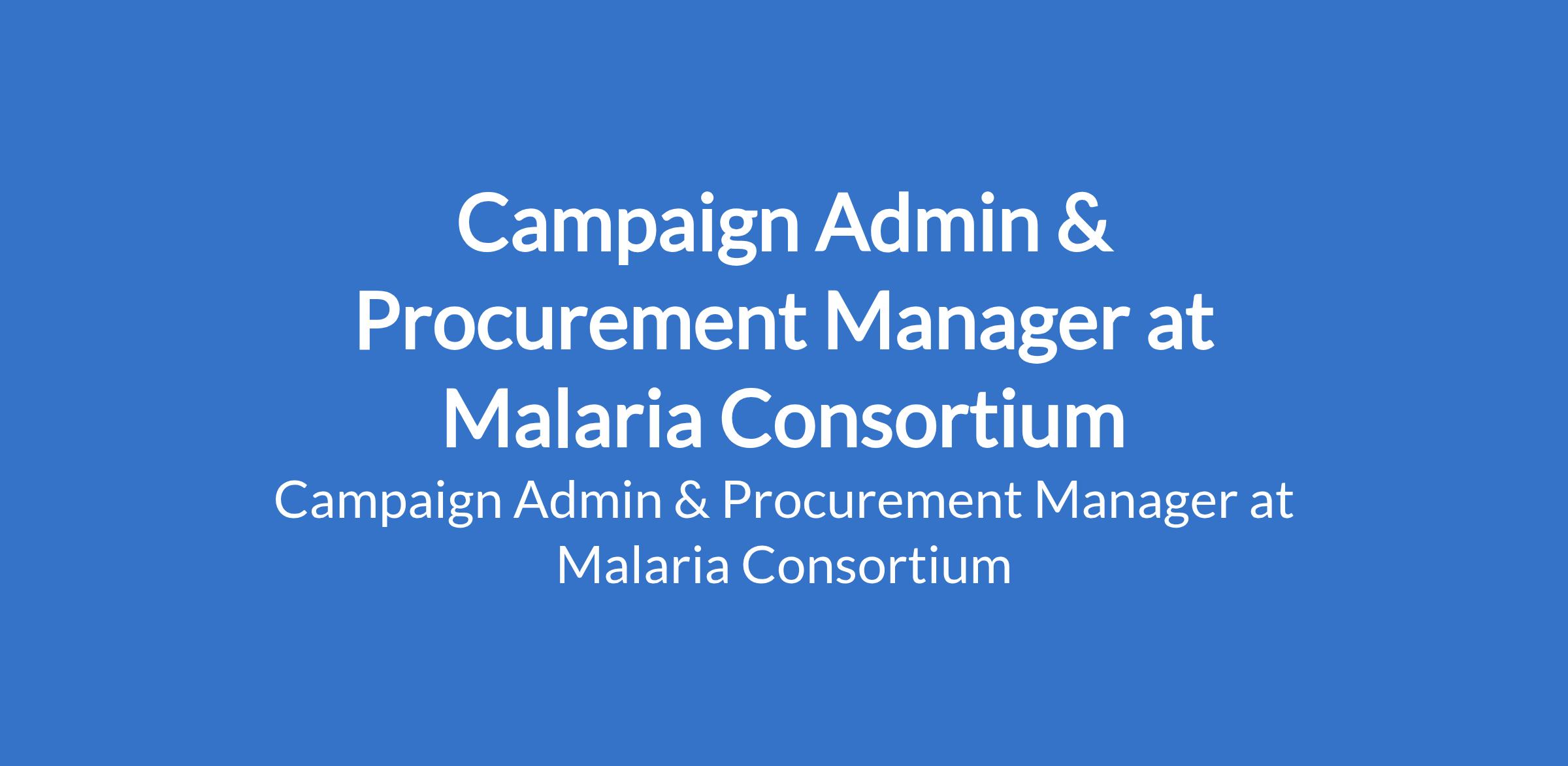 Malaria Consortium is recruiting to fill the position of: Campaign Admin & Procurement Manager. The position is located in Abuja. Interested candidates should possess a Bachelor's degree in Procurement and Operations or a related field, or equivalent experience with 5 - 6 years of experience working in an operations role specifically procurement.