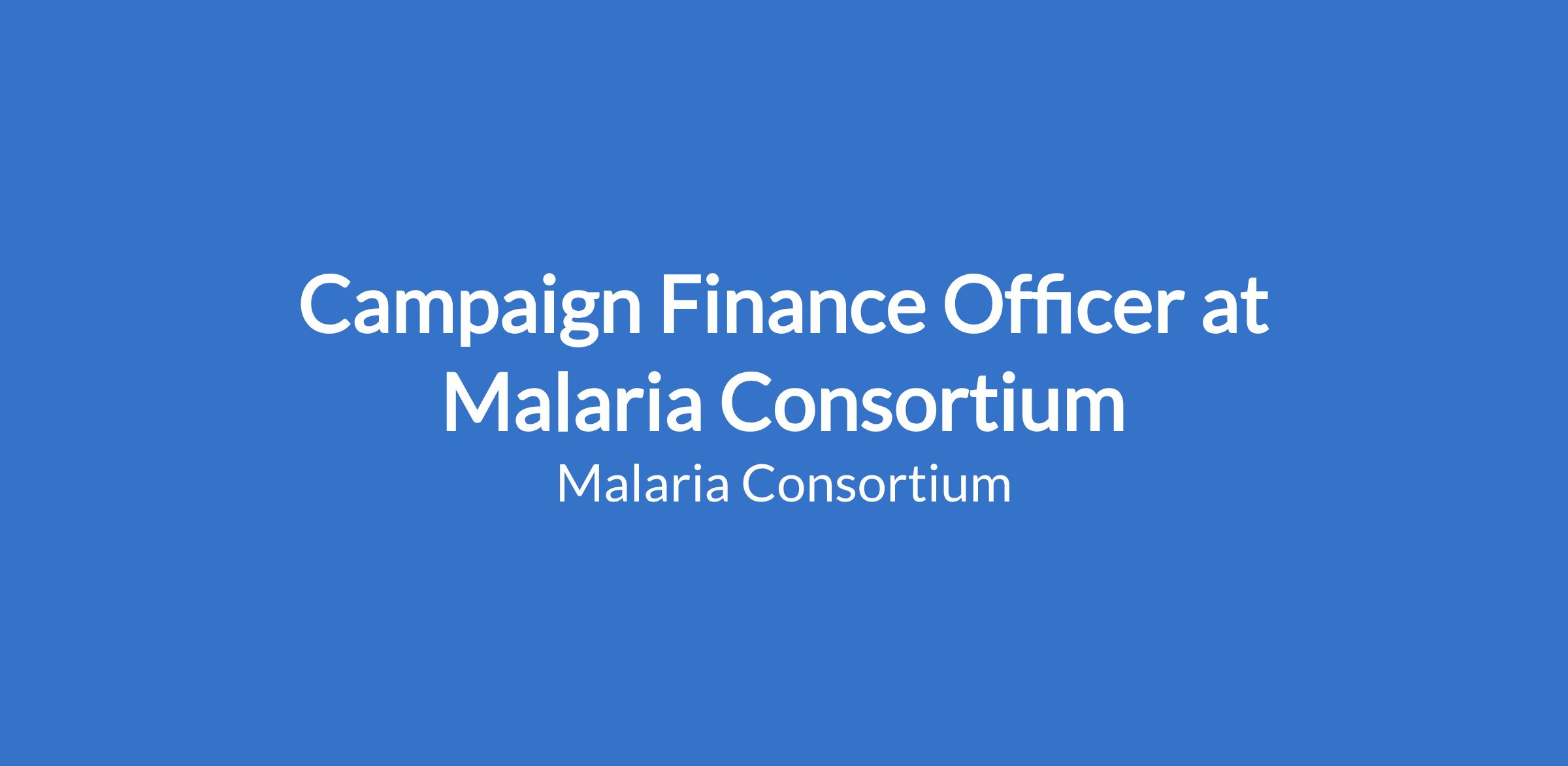 Malaria Consortium is recruiting for a Campaign Finance Officer to join our team in Abuja, Nigeria