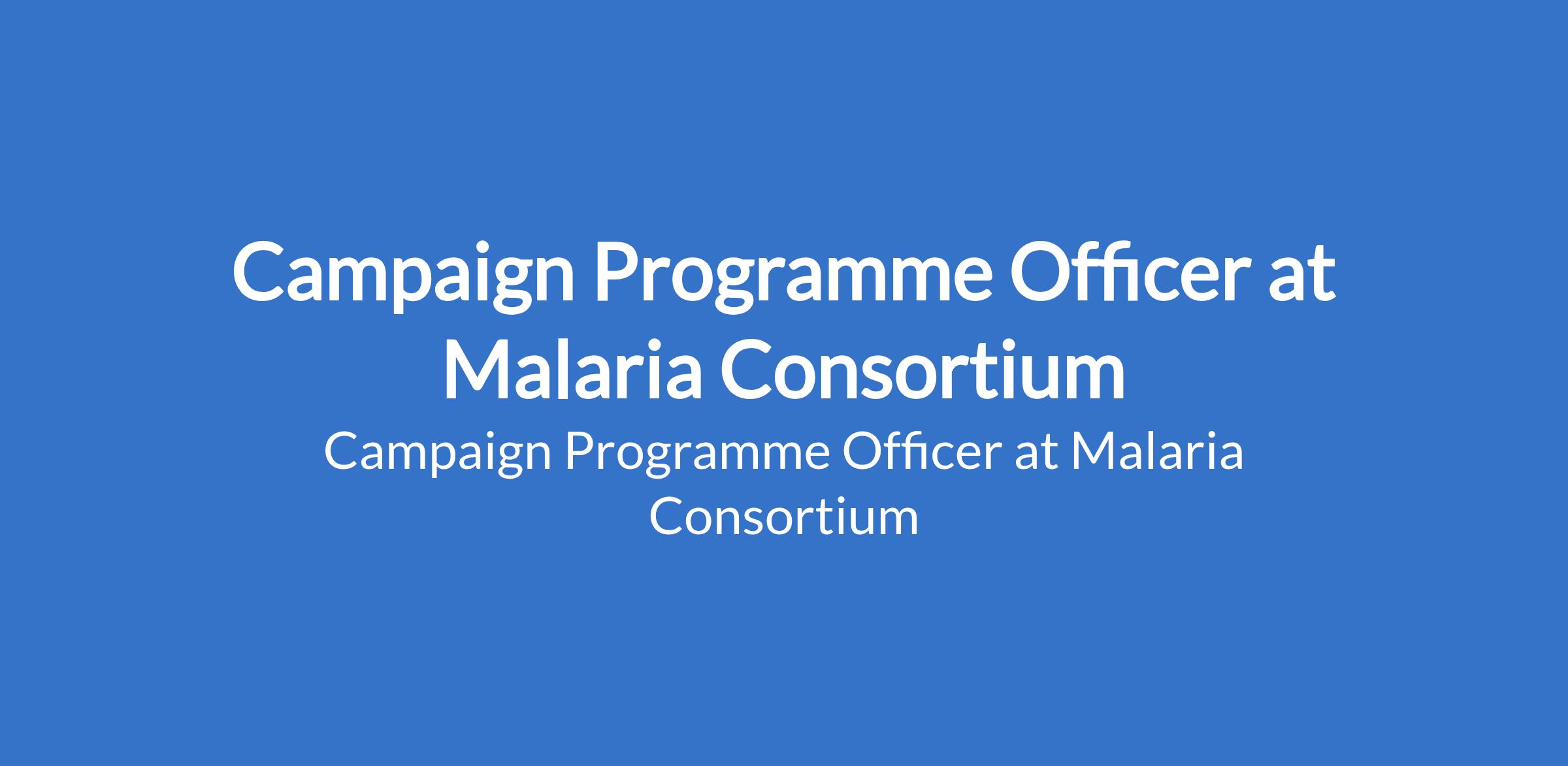 Malaria Consortium is recruiting to fill the position of: Campaign Programme Officer. The position is located in Abuja. Interested candidates should possess a Master`s Degree in Statistics or Public Health related field, with at least 3 years relevant experience.