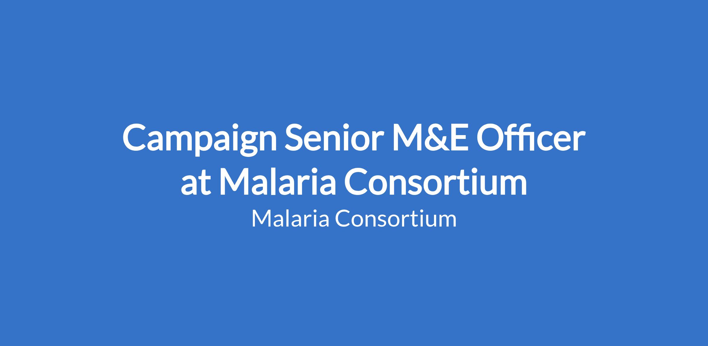 Malaria Consortium is recruiting for a Campaign Senior Monitoring & Evaluation Officer to join our team in Abuja, Nigeria.