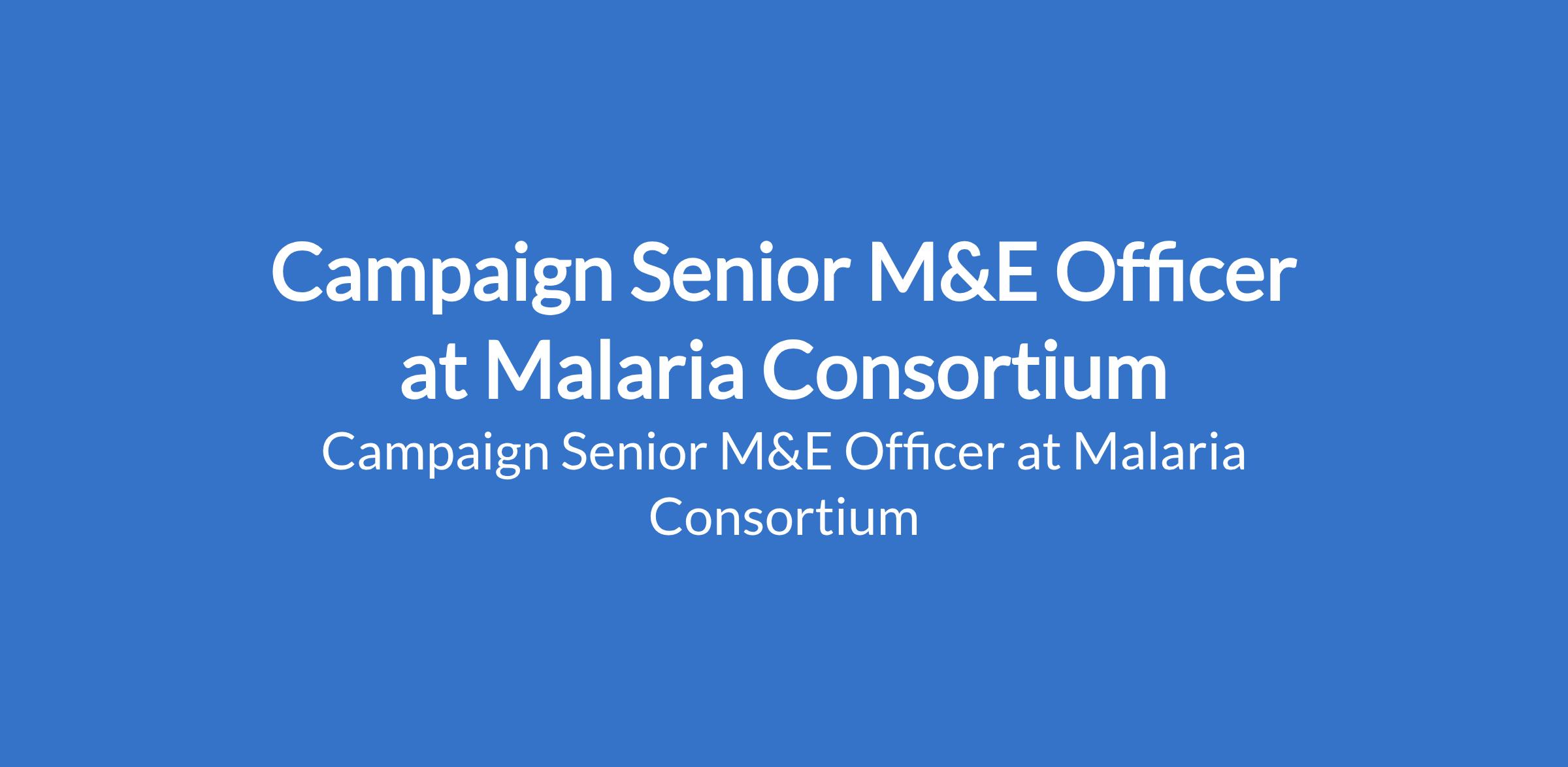 Malaria Consortium is recruiting to fill the position of: Campaign Senior M&E Officer. The position is located in Abuja. Interested candidates should possess a Degree in Statistics, Demography, Mathematics or any other relevant quantitative relevant discipline with a minimum of 5-years experience.