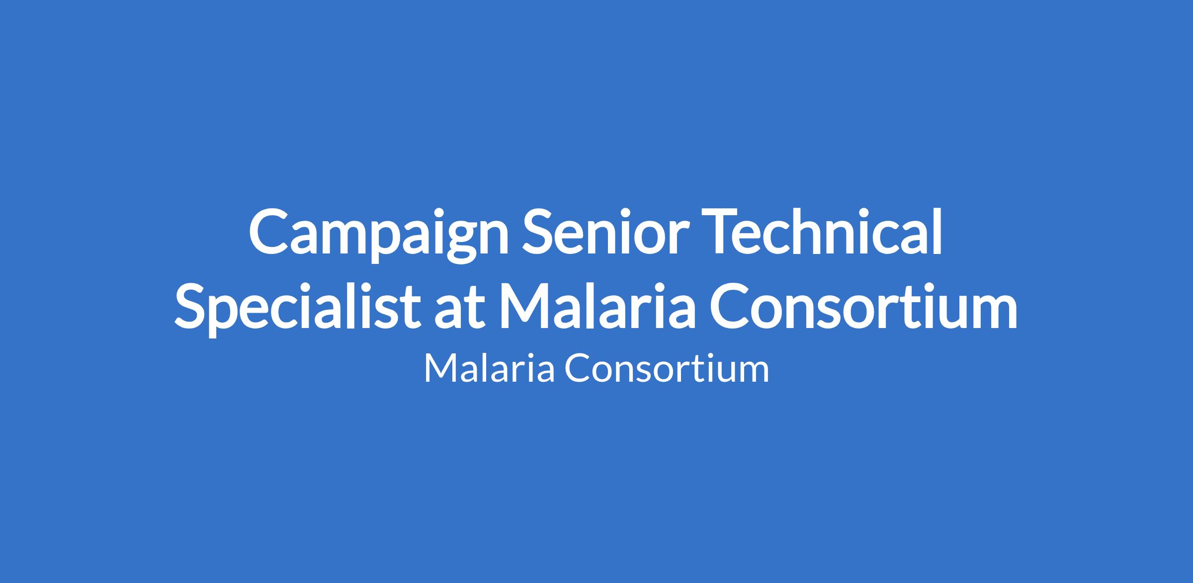 Malaria Consortium is recruiting for a Campaign Senior Technical Specialist to join our team in Abuja, Nigeria.