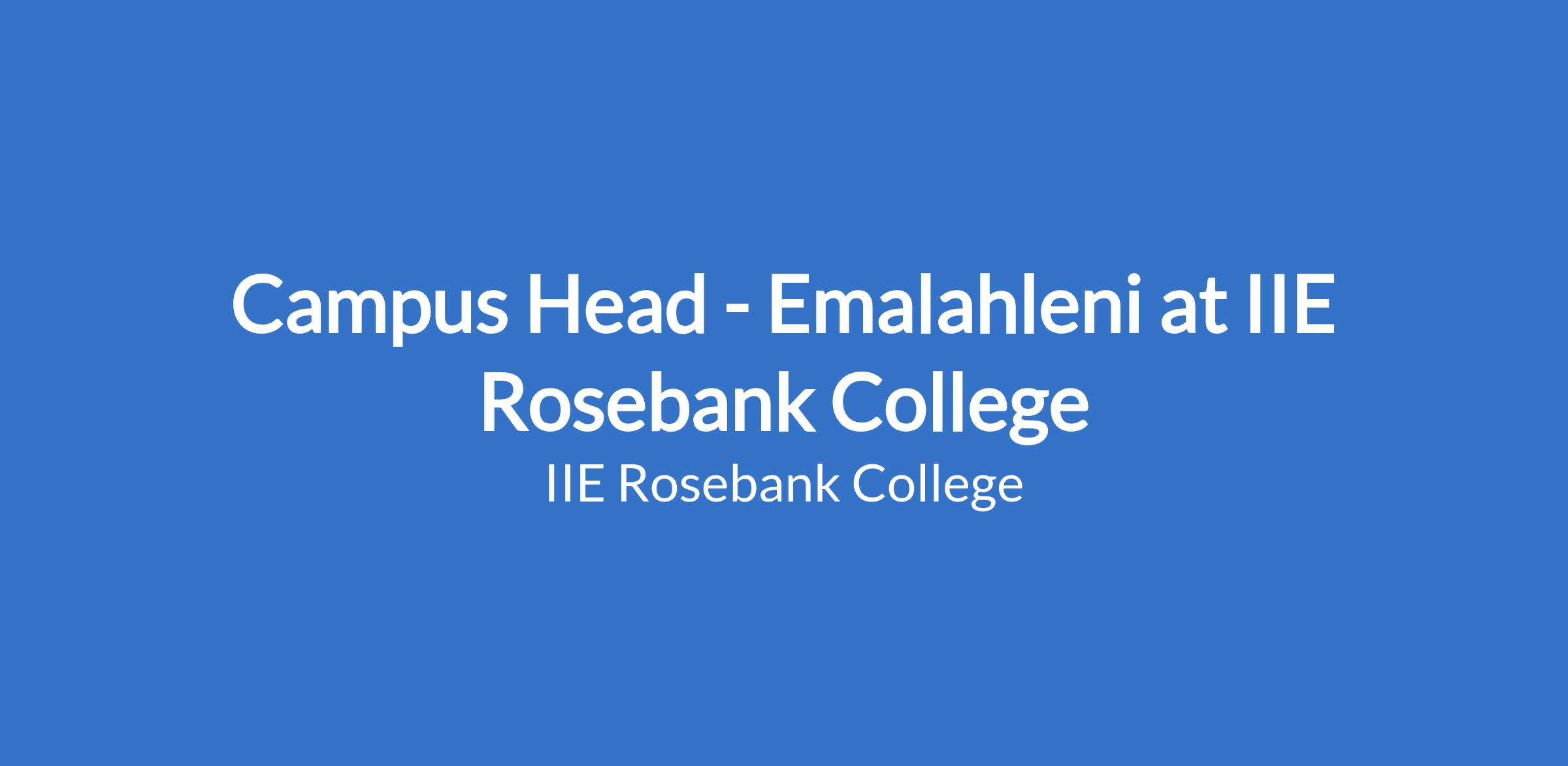 Provide the overall direction and management of Rosebank College campus.