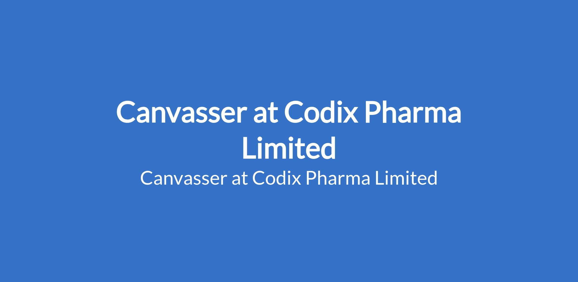 Canvasser at Codix Pharma Limited