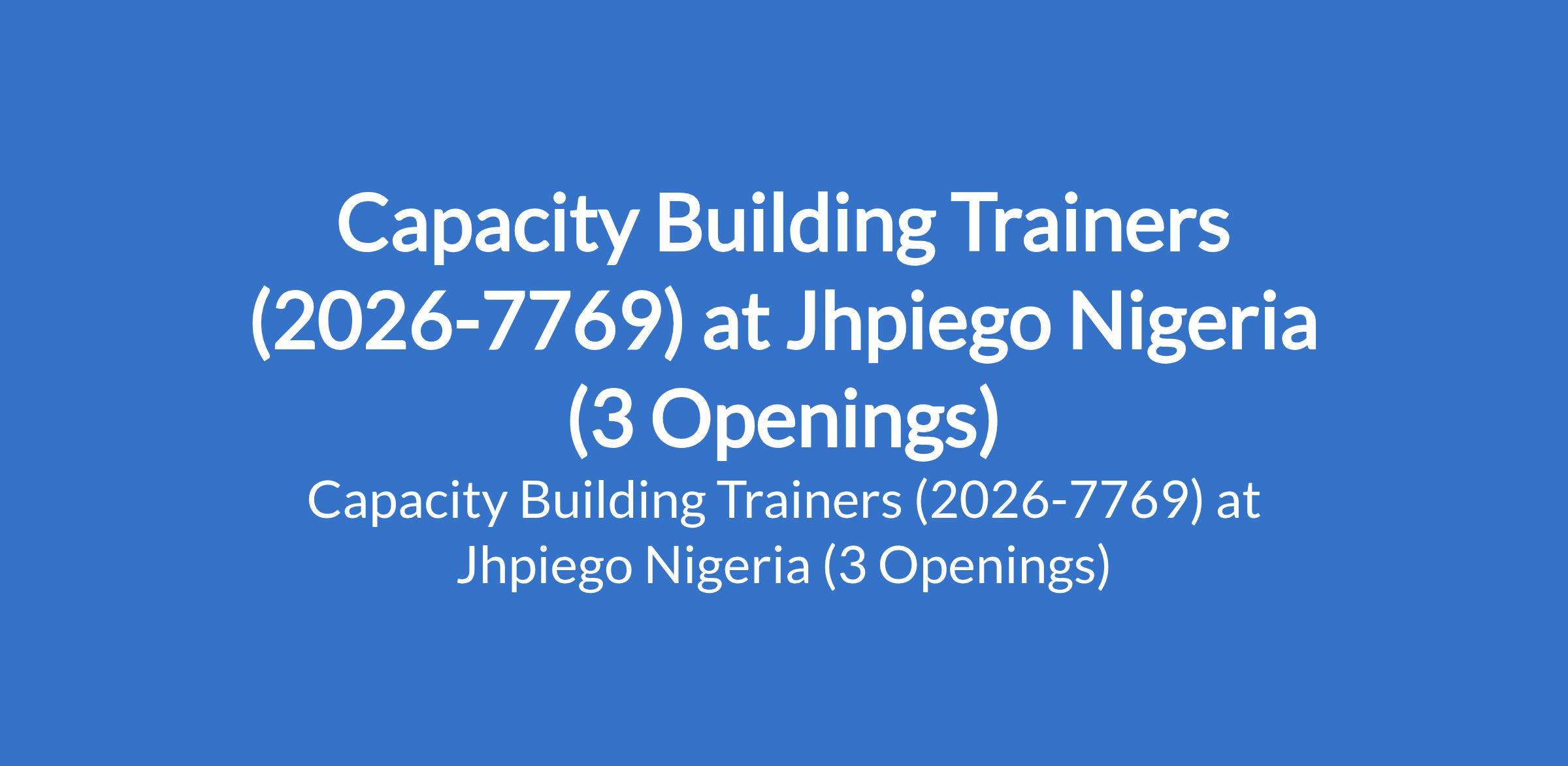 Jhpiego Nigeria is recruiting to fill the position of: Capacity Building Trainer. The position is located in Abuja, Birnin Kebbi - Kebbi, and Abakaliki - Ebonyi States. Interested candidates should possess an Advanced Degree in Public Health, Nutrition, Community Health, or related fields; Certification or recognized experience as an IMAM and/or MIYCN master trainer with a minimum of 5 years of experience in nutrition programming, particularly in IMAM and MIYCN implementation.