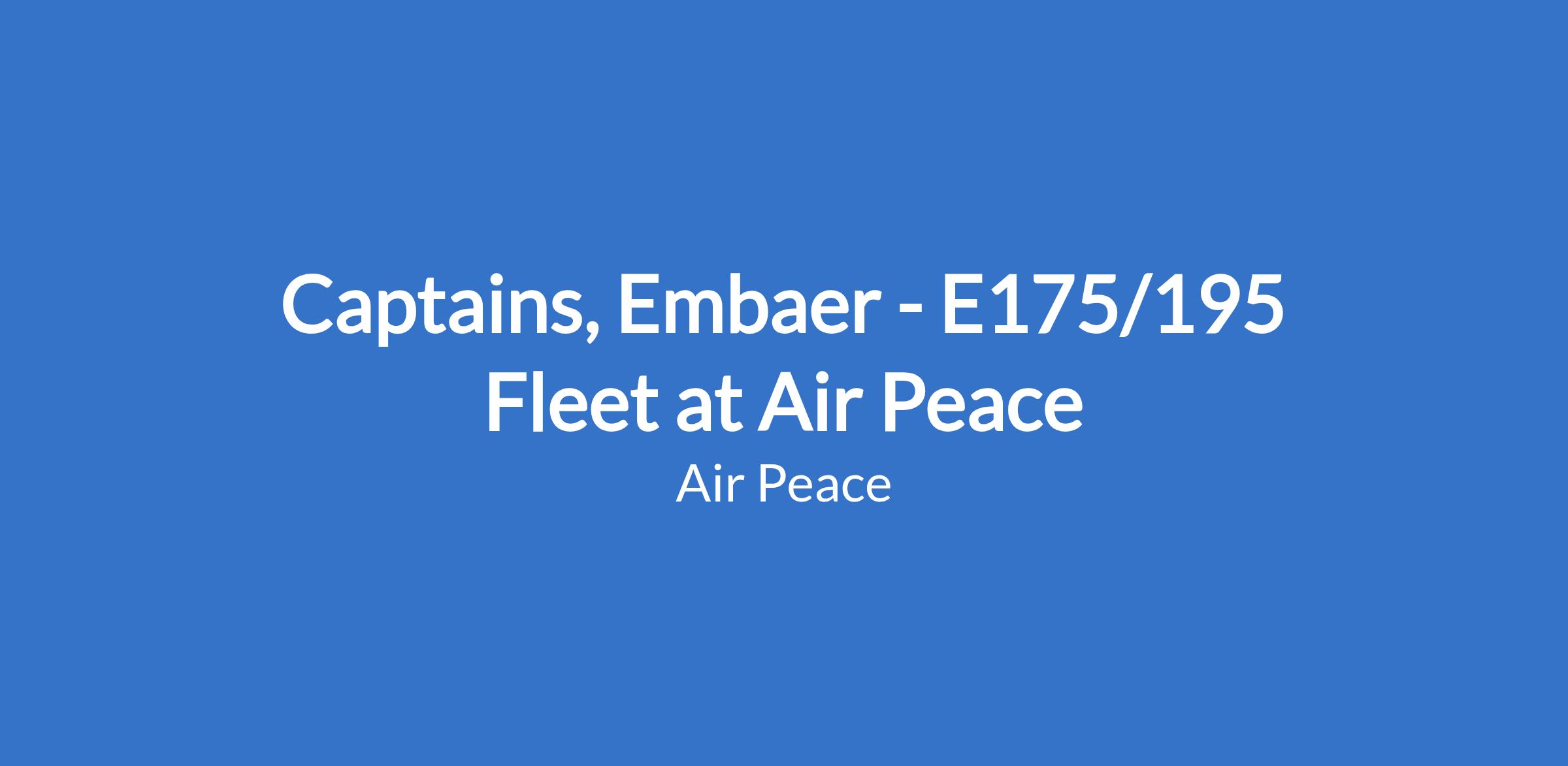 Captains, Embaer - E175/195 Fleet at Air Peace