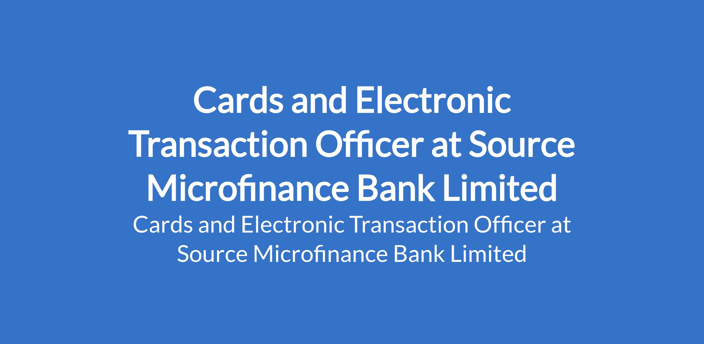 Source Microfinance Bank Limited is recruiting to fill the position of: Cards and Electronic Transaction Officer. The position is located in Lagos State. Interested candidates should possess a Business related Degree with 5 years card management experience in the financial services sector.
