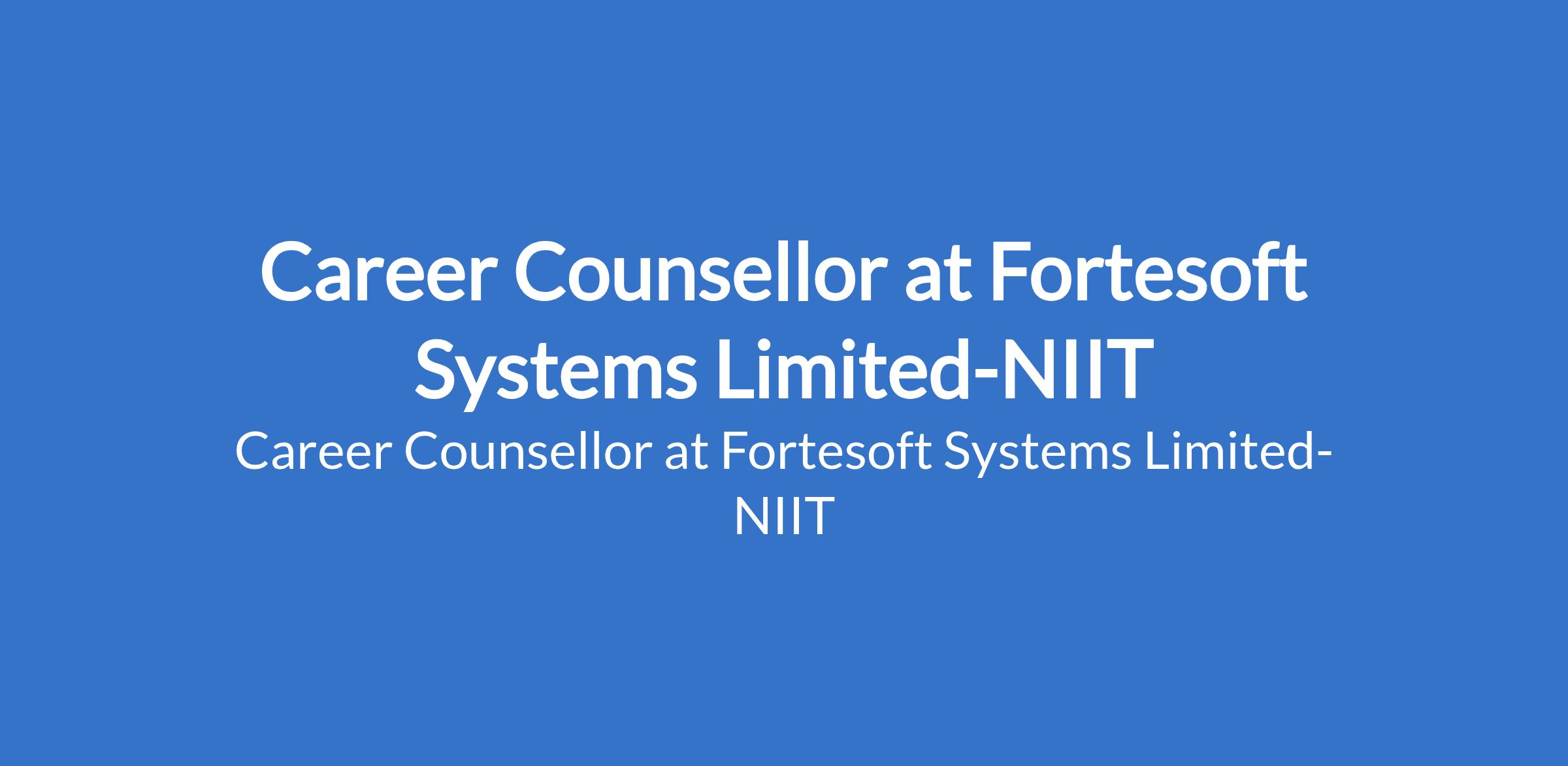 Career Counsellor at Fortesoft Systems Limited-NIIT