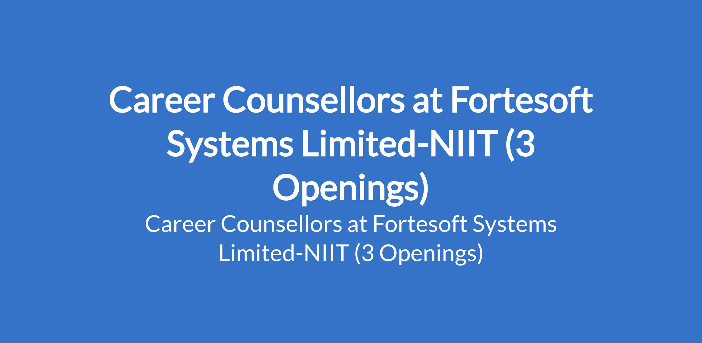 Career Counsellors at Fortesoft Systems Limited-NIIT (3 Openings)