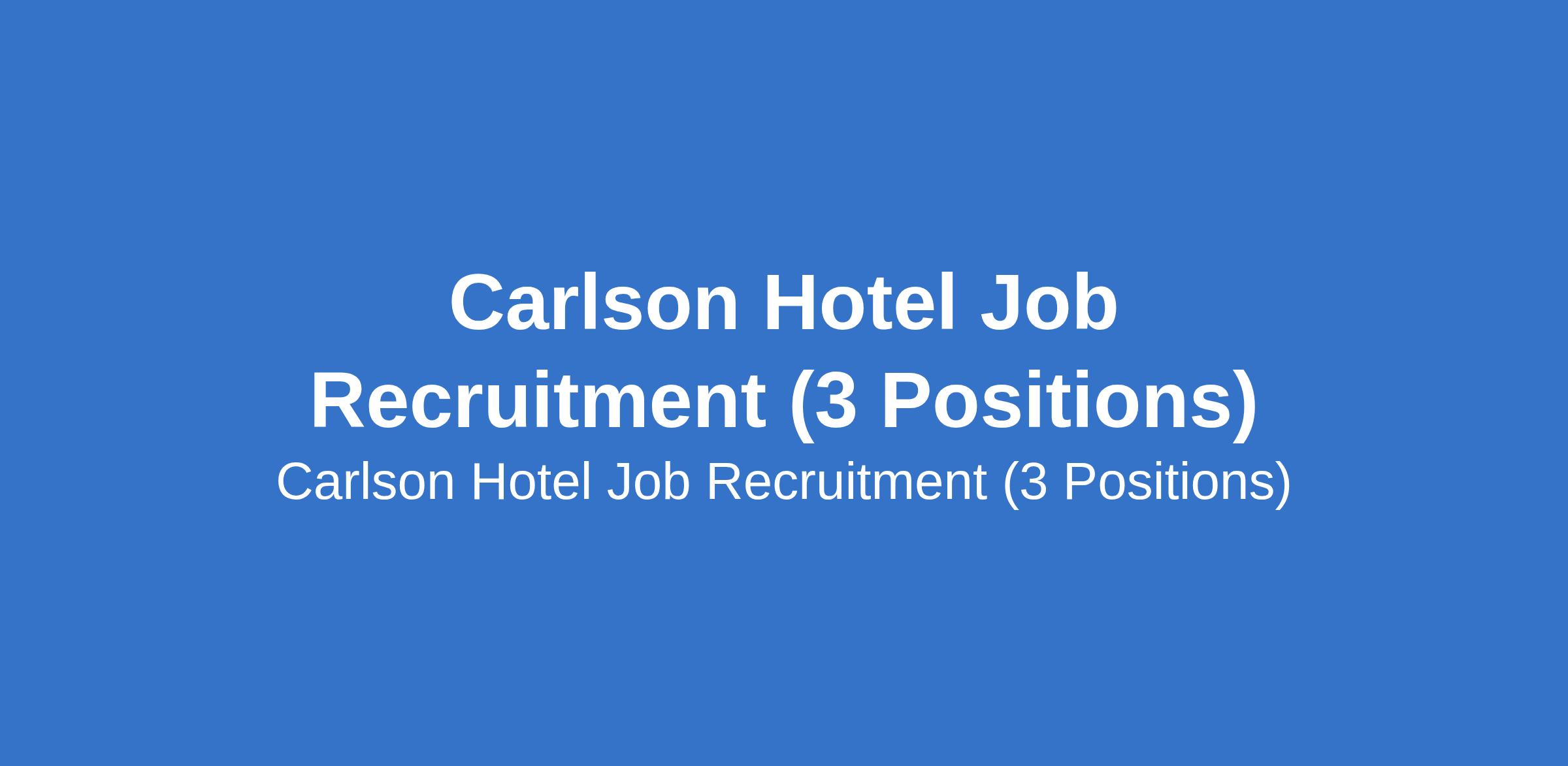 Carlson Hotel Job Recruitment (3 Positions)