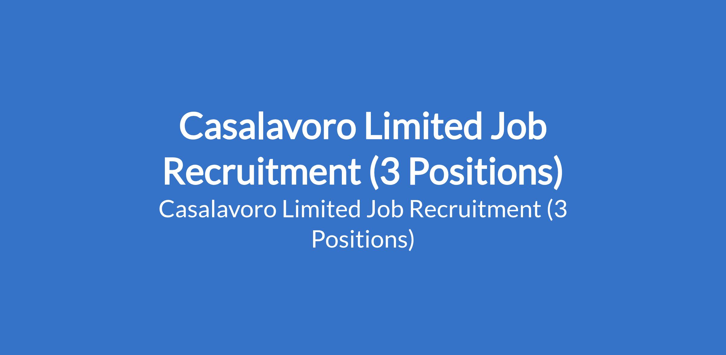 Casalavoro Limited Job Recruitment (3 Positions)