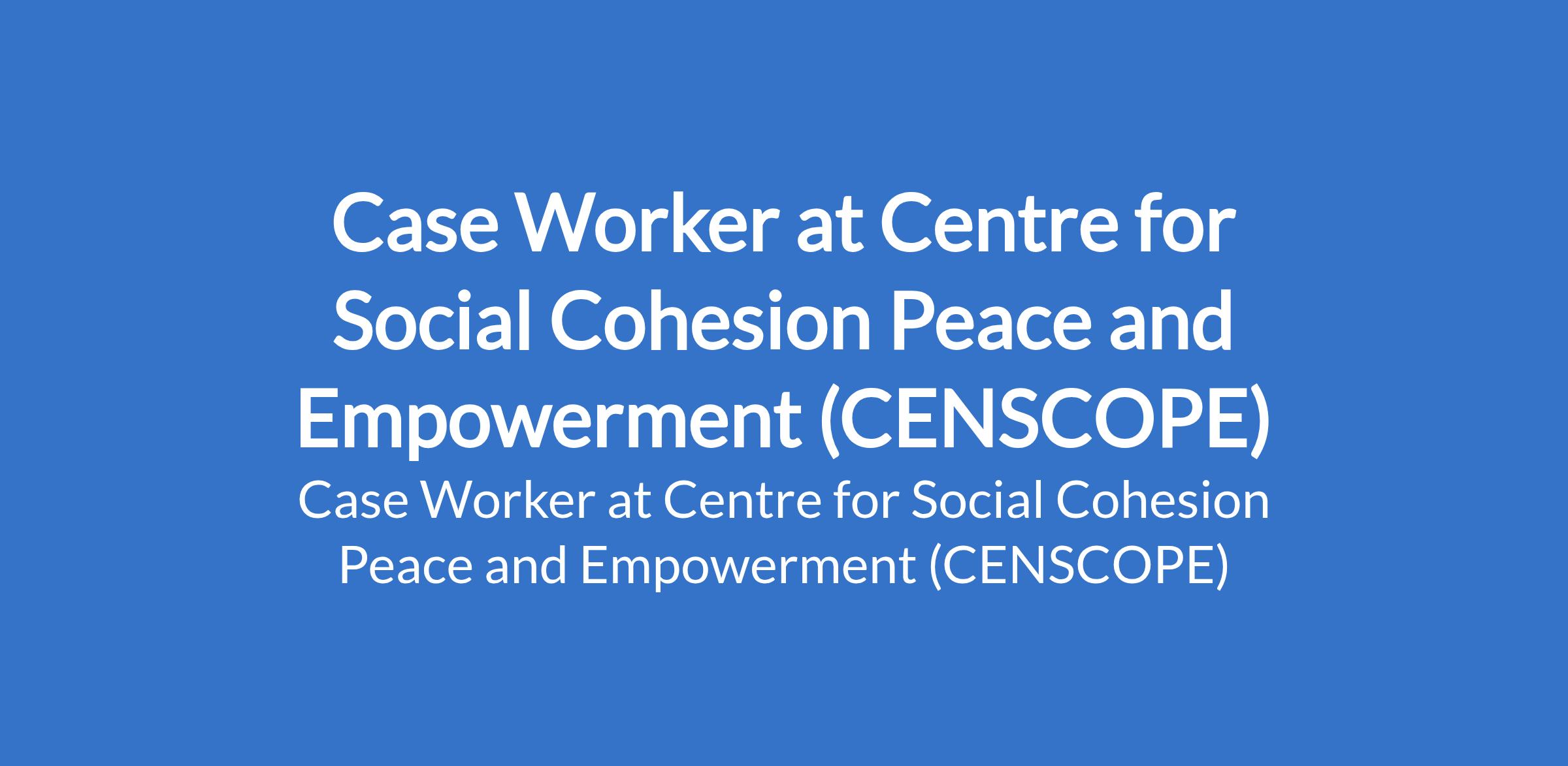 Centre for Social Cohesion Peace and Empowerment (CENSCOPE) is recruiting to fill the position of: Case Worker. The position is located in Kaga LGA, Borno State. Interested candidates should possess a Bachelors Degree in Social Work, Psychology, Sociology, or related field with 23 years' experience in case management or protection programming.