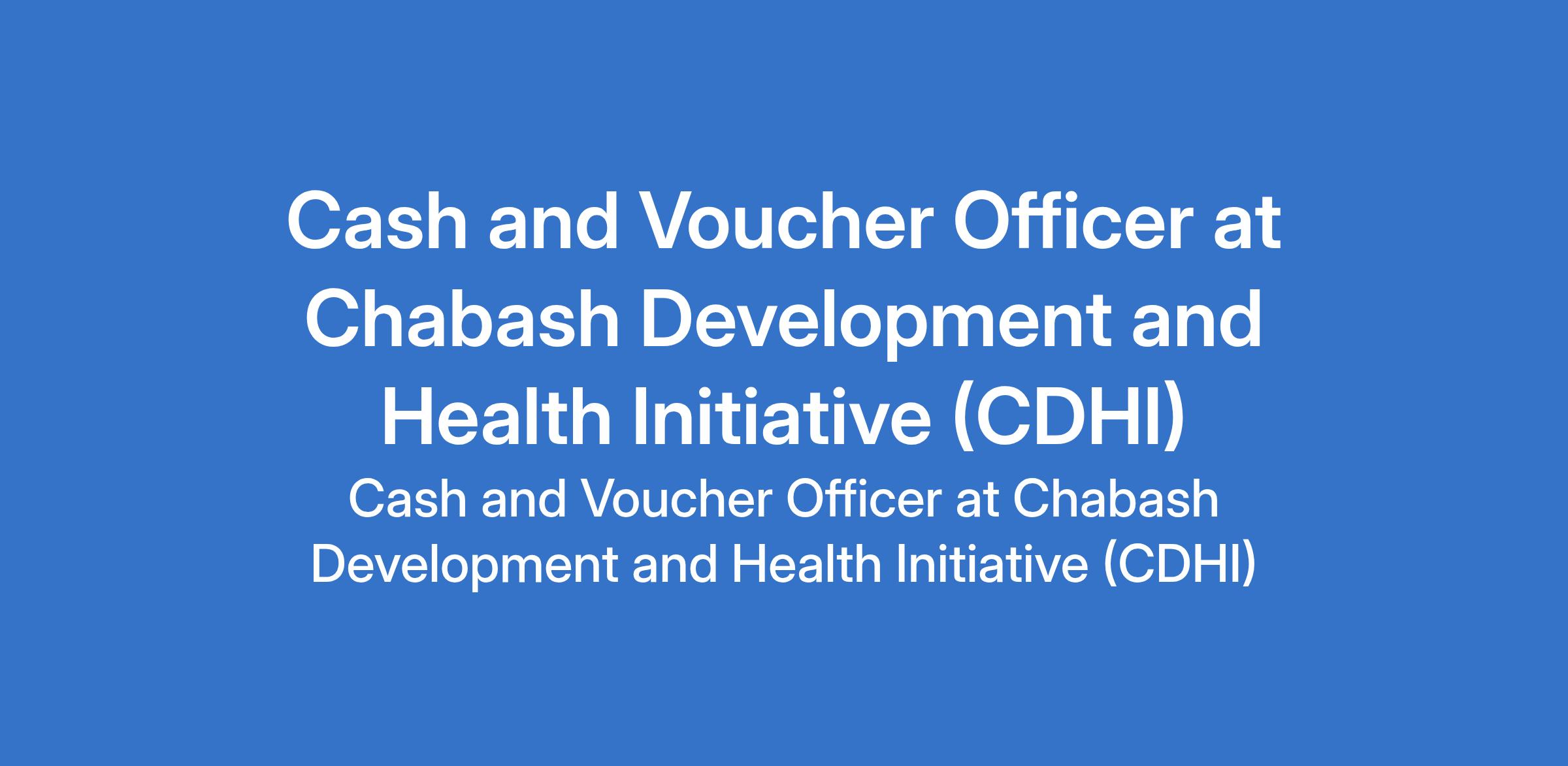 Chabash Development and Health Initiative (CDHI) is recruiting to fill the position of: Cash and Voucher Officer. The position is located in Maiduguri, Borno State. Interested candidates should possess a Bachelor's Degree or HND in relevant course Social Policy, Social Science, International Development, Economics or related relevant discipline with at least 3 years experience of working in Cash & Voucher Assistance in emergency and development settings, for a broad range of institutional donors and sectors.